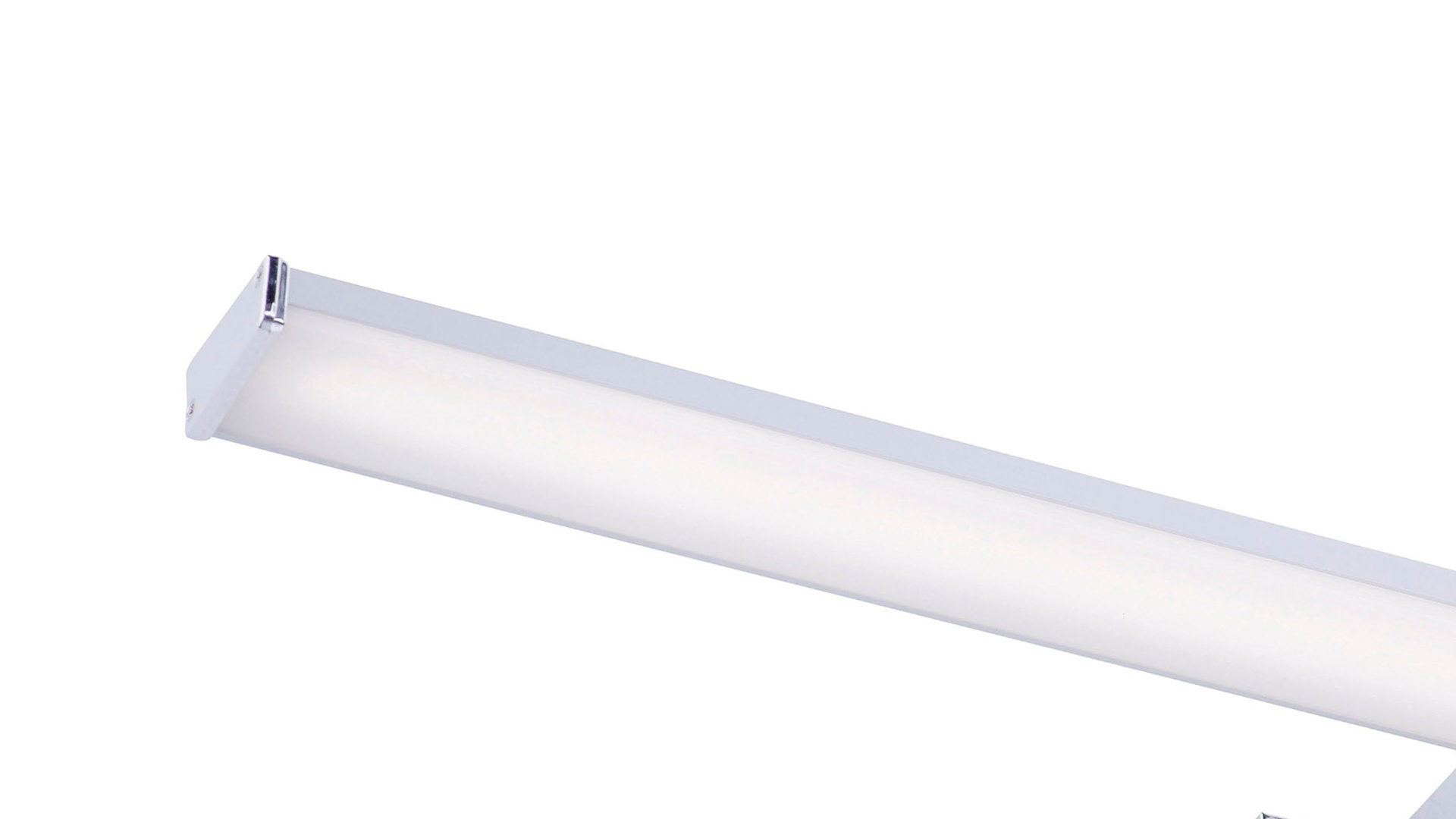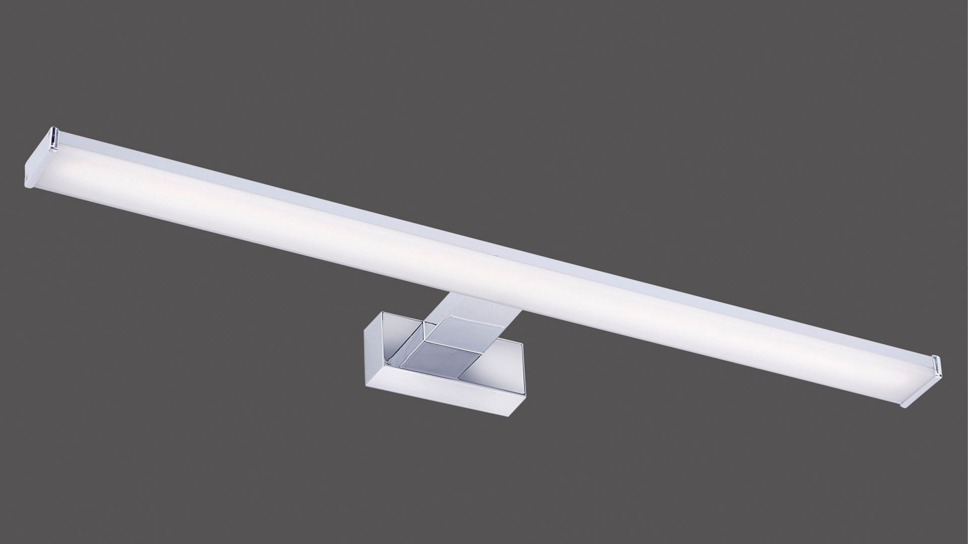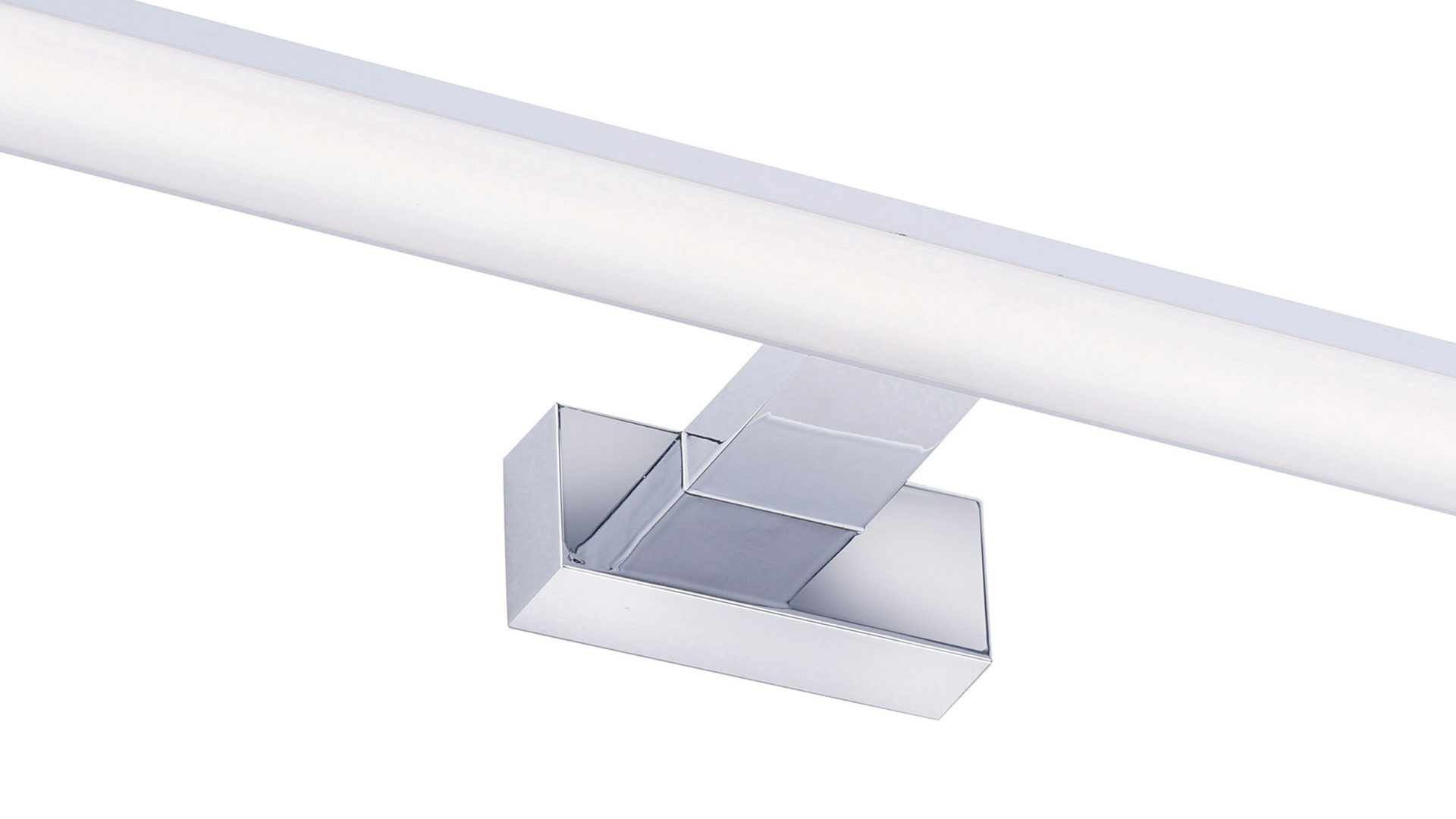 LeuchtenDirekt Spiegellampe Mattis | chromfarbenes Metall, kombiniert mit weißem Acryl | Maße ca. 60 x 4 x 12 cm (LxHxB) | inklusive 1x 12 Watt-LED-Board, 960 Lumen / 4000 Kelvin | Energieeffizienzklasse F (Spektrum A bis G)
