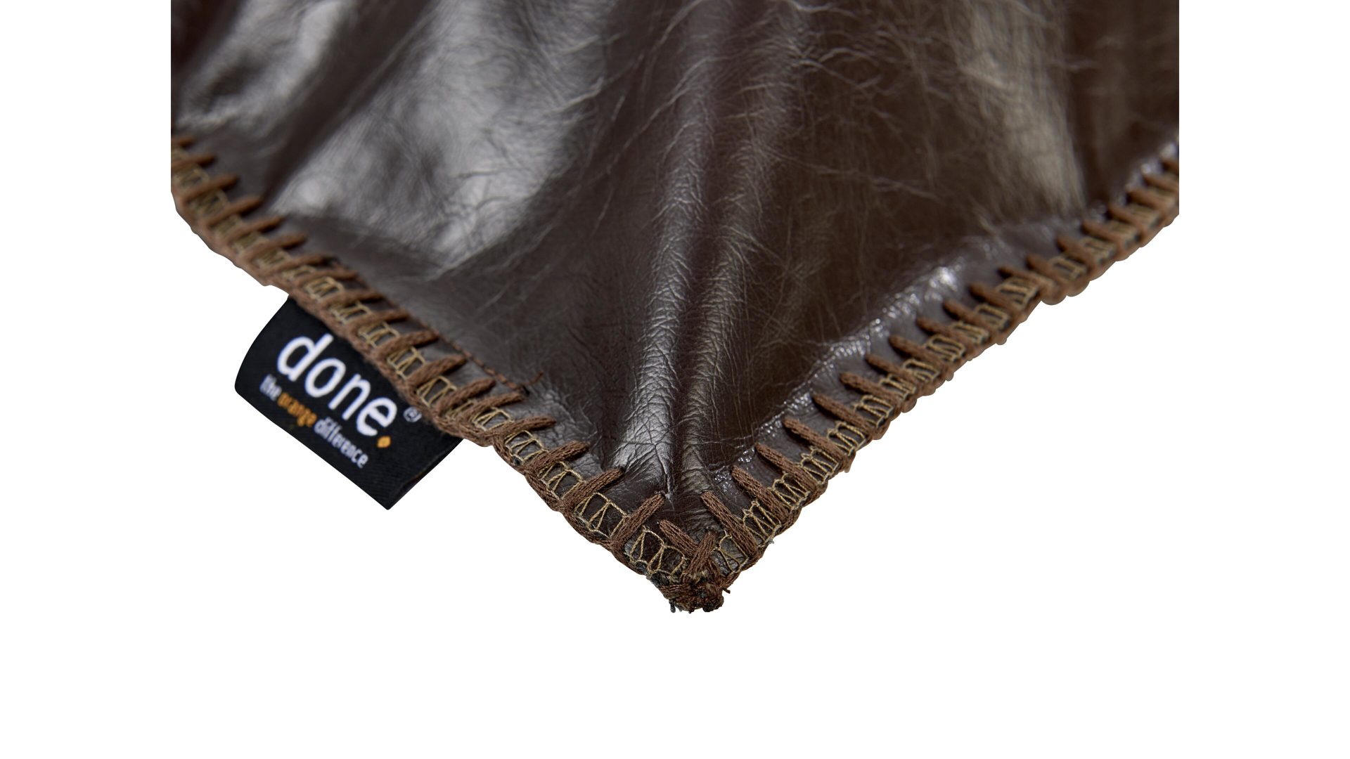 Dekorieren Sie den Kissenbezug, der auf beiden Seiten aus dunkelbraunem Kunstleder besteht, entweder alleine oder gleich zu mehreren nebeneinander auf Ihrem Sofa im Wohnzimmer. Auch im Arbeitszimmer oder im Gästezimmer macht die Kissenhülle eine gute Figur. Weiteres schönes Detail des Kissenbezuges ist eine umlaufende Ziernaht. Mit dem verdeckten Reißverschluss können Sie den Bezug ganz leicht abziehen. Weiterer Pluspunkt: Die pflegeleichte Kissenhülle ist abwaschbar.