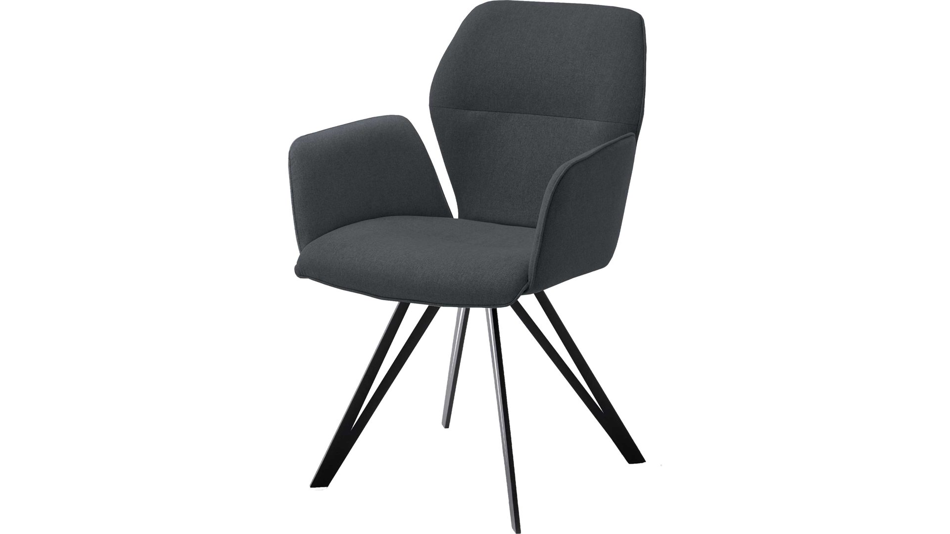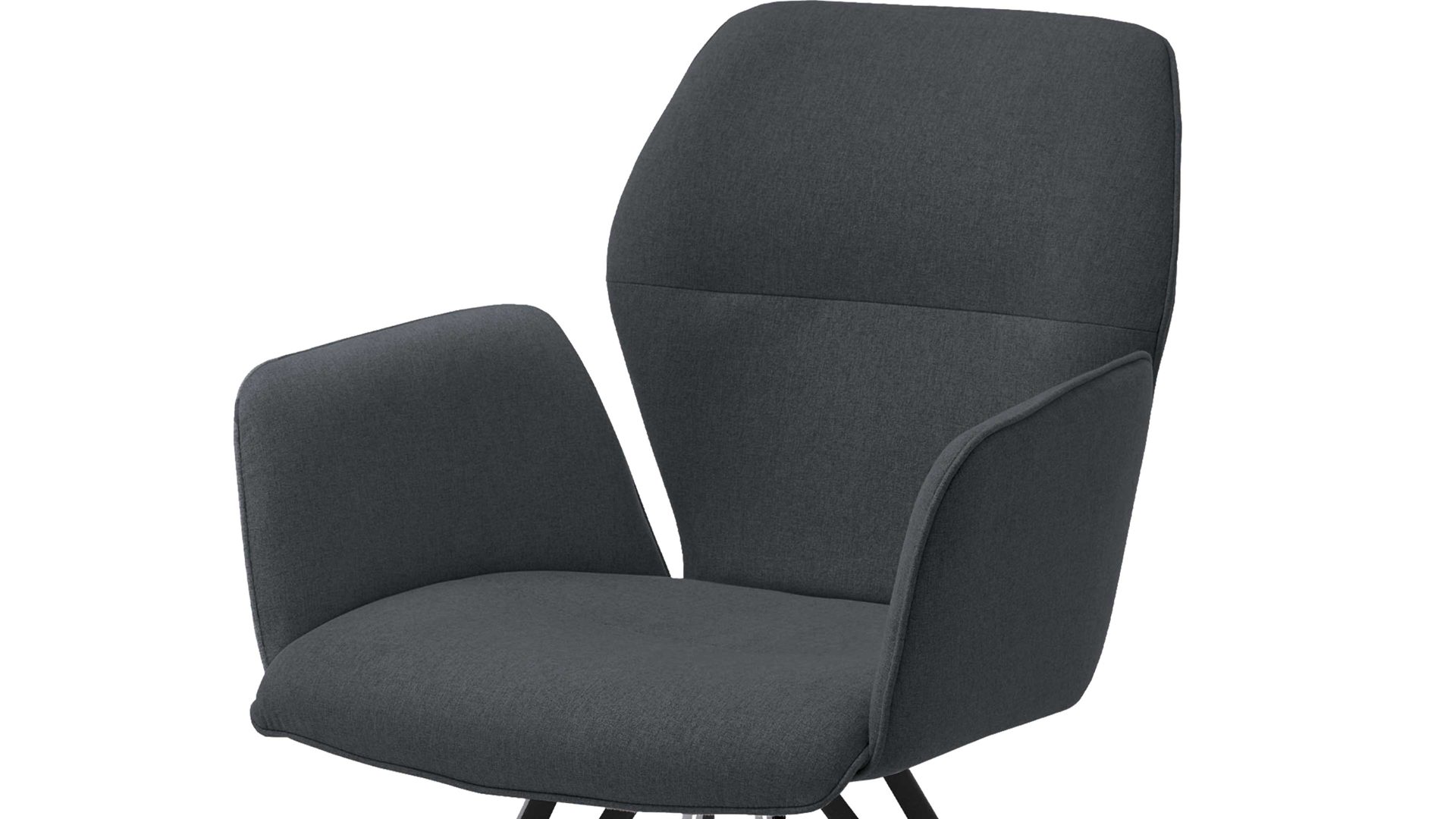 Ein eindrucksvoller Designer-Armlehnstuhl im Skandi-Look. Das hochwertige Modell Merlot präsentiert sich klassisch-schlicht, aber dennoch stilvoll. Der Esszimmerstuhl verfügt über einen graphitfarbenen Webstoffbezug sowie ein schwarz pulverbeschichtetes Vierfuß-Flachstahlgestell. Bei Maßen von ca. 62 x 91 x 60 cm (BxHxT) weist er eine komfortable Sitzhöhe von ca. 49 cm auf.