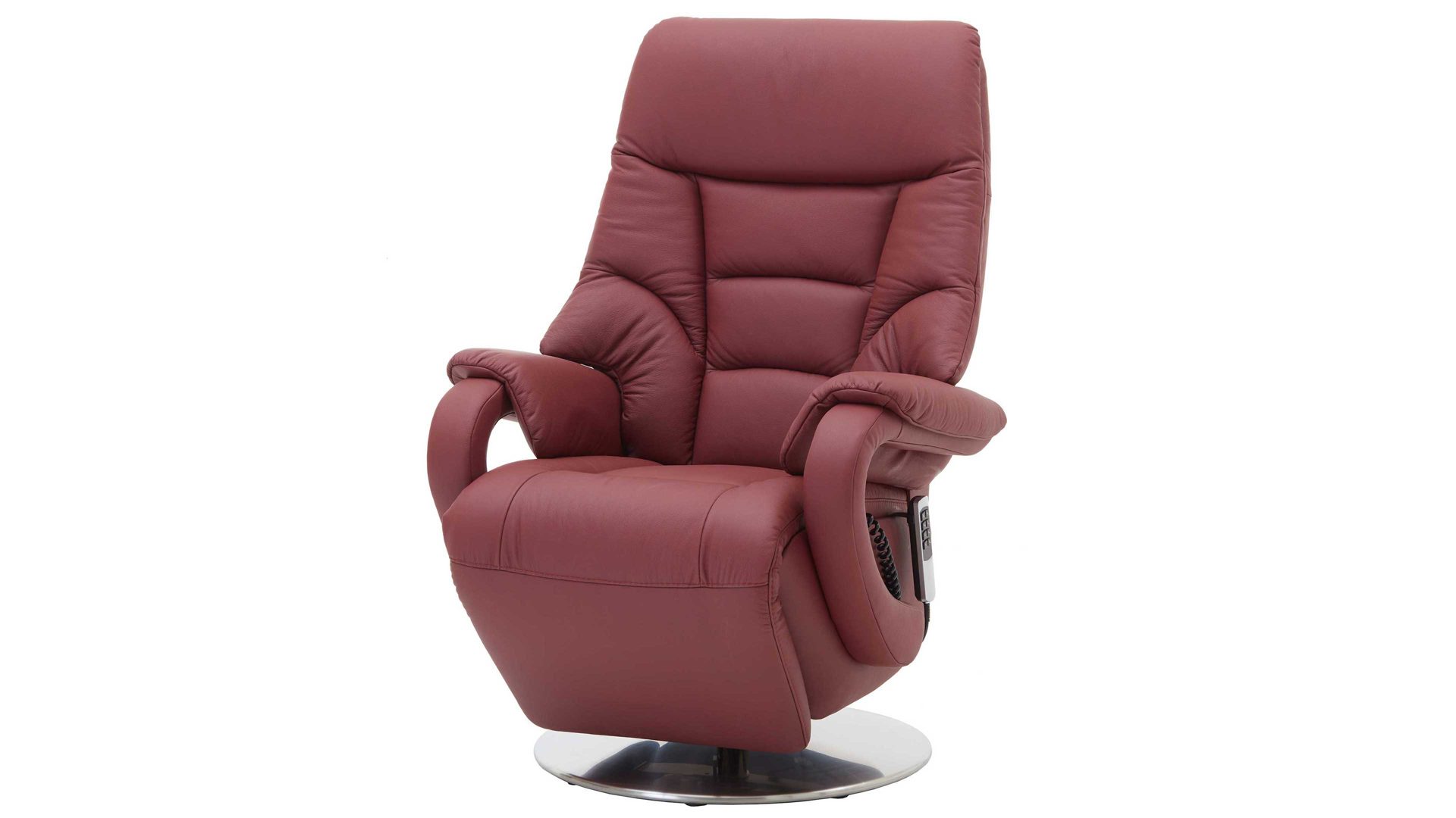 Dieser Relaxsessel kombiniert einen robusten glänzenden Edelstahl-Tellerfuß mit einem stilvollen merlotfarbenen LongLife-Lederbezug. Durch die top aufeinander abgestimmten Materialien und Farben strahlt der Fernsehsessel moderne Eleganz aus. Für die nötige Stabilität sorgt der Stahlrohrrahmen. Er macht den TV-Sessel bis 130 kg belastbar. Die Maße des hochwertig verarbeiteten Relaxsessels belaufen sich auf ca. 80 x 116 x 80 cm (BxHxT), bei einer Sitzhöhe von ca. 49 cm und einer Sitztiefe von ca. 55 cm.