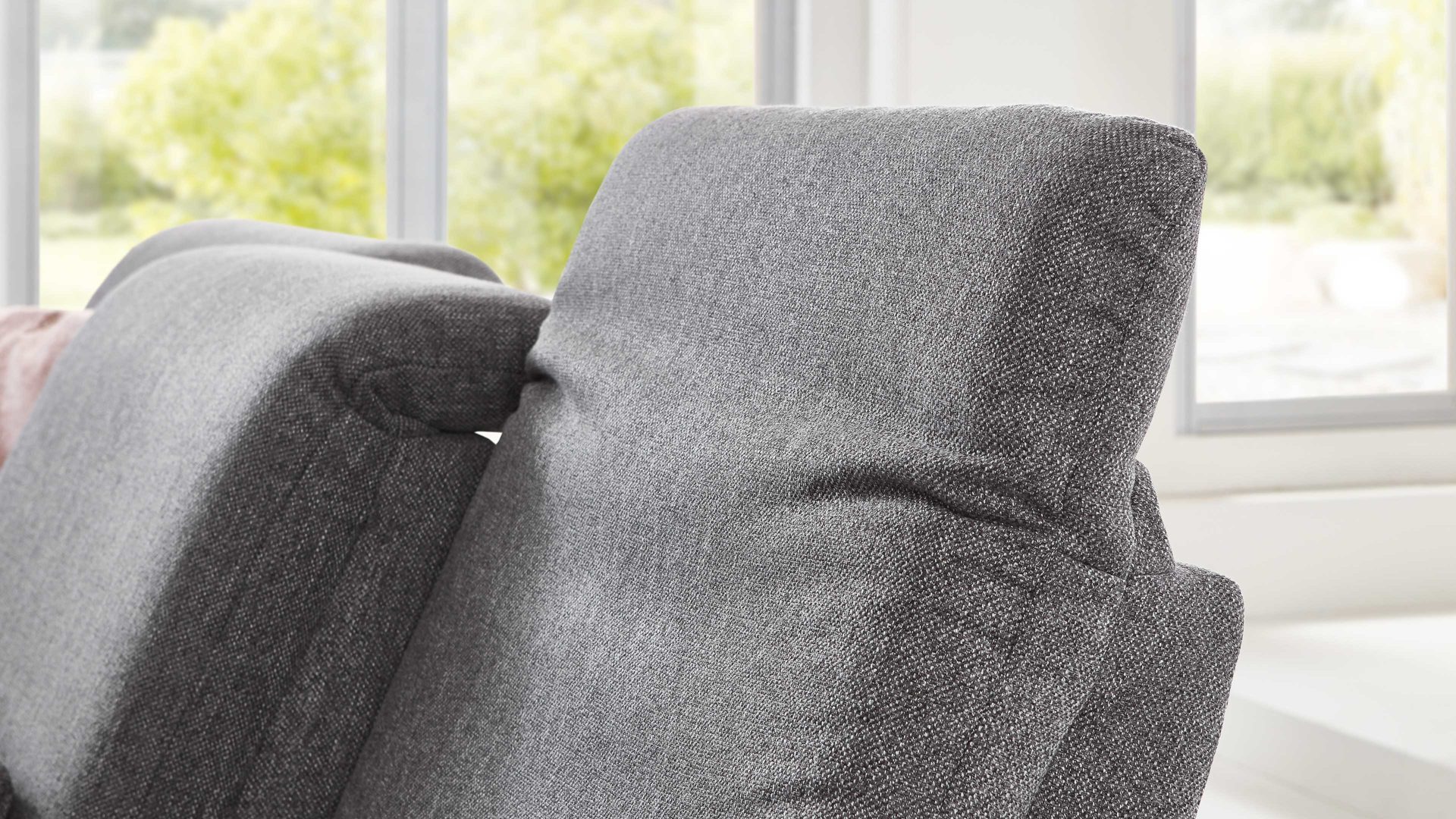 Geben Sie Ihrem Wohnzimmer mit der Kopfteilverstellung aus dem Polsterprogramm Tiamo Plus eine persönliche Note und genießen Sie maximalen Komfort und entspannte Stunden auf Ihrer Couch.