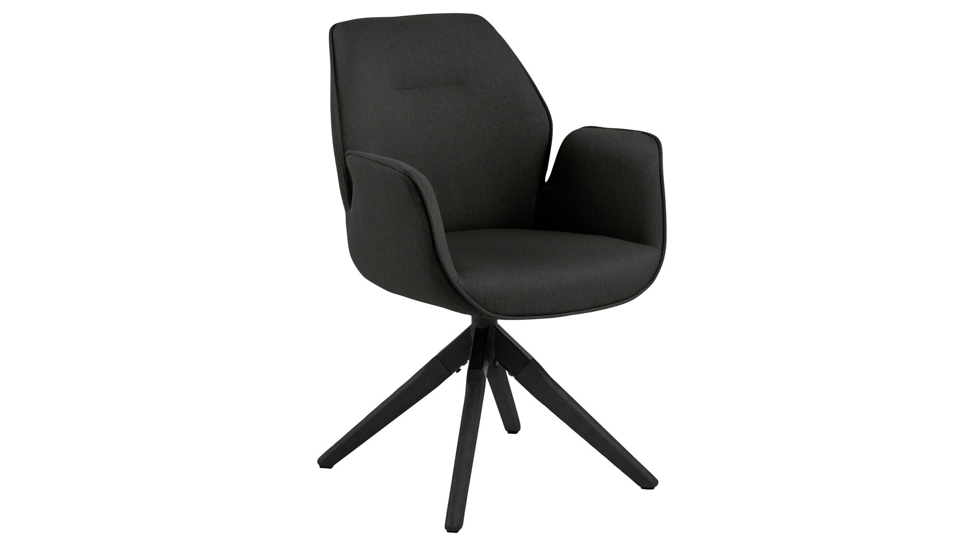 Dabei harmoniert der Armlehnstuhl in seiner sanften Formensprache mit zahlreichen Einrichtungsstilen: Dafür sorgt der dunkelgraue Stoffbezug Town 33, der die gesamte Sitzschale inklusive der bequemen Armlehnen weich umhüllt. Die schwarz lackierten Holzfüße fließen stimmig in das Gesamtbild ein. Ob als Esszimmerstuhl oder für erholsame Momente im Lounge-Bereich und Wohnzimmer: Das Modell Aura ist der perfekte Allrounder.