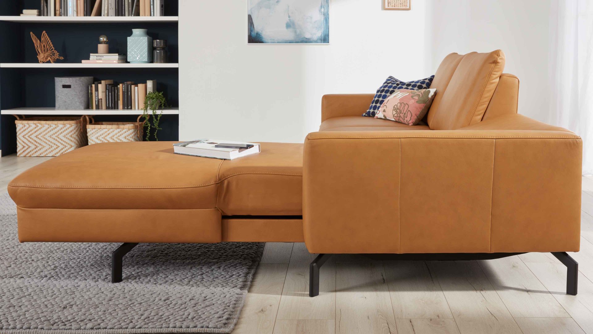 Die motorische Liegefunktion MoLi ist ein Funktions-Mehrpreis für bestimmte Möbel aus dem Modulmaster-Polsterprogramm MM-PN1126. Sie ermöglicht es, die Rückenlehne und Sitzfläche einfach per Handschalter stufenlos zu verstellen und bis zur Liegeposition nach vorn zu schieben.