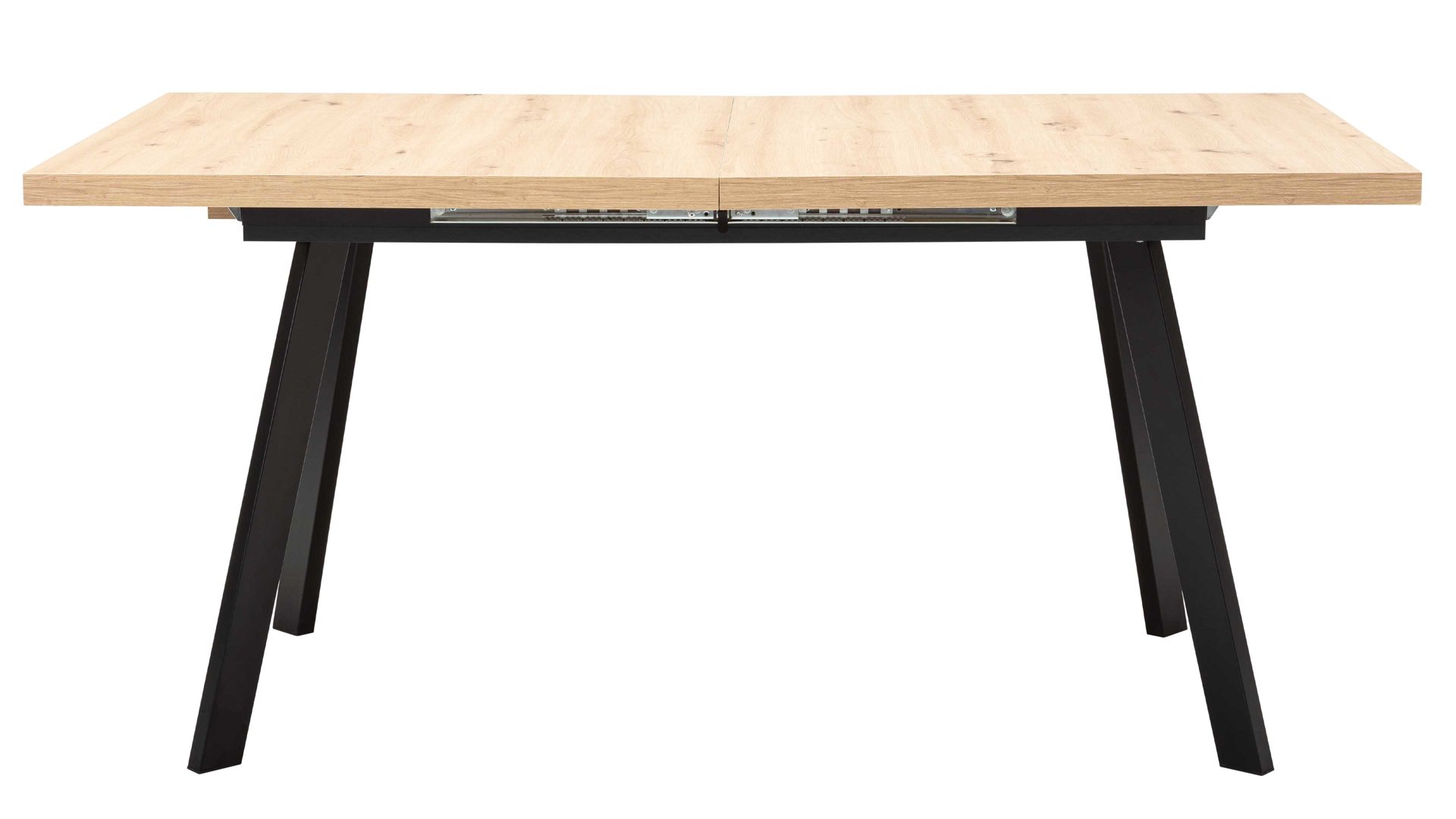 Er kombiniert eine ausziehbare Tischplatte in Asteiche-Nachbildung mit einem mattschwarzen Holzgestell. Durch die robusten Materialien und die hohe Verarbeitungsqualität ist der Funktionstisch enorm stabil und sehr langlebig. Seine Maße belaufen sich auf ca. 160 - 210 x 76 x 90 cm (LxHxT). Demnach können hier bis zu 8 Personen bequem zusammen essen.