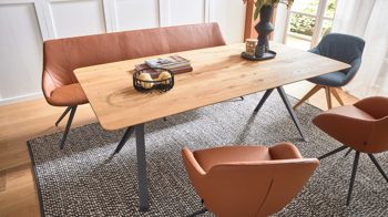 Der Armlehnstuhl Aiko Four A32 ist eine hervorragende Wahl für elegante, natürliche Wohnstile. In Kombination mit einem Massivholztisch entsteht ein warmes, einladendes Ambiente. DEKTON®-Tischplatten in Grautönen oder Steinoptik setzen moderne Kontraste. Ergänzen Sie das Ensemble durch passende Stühle aus der Serie – gerne auch mit Drehfunktion für noch mehr Komfort.