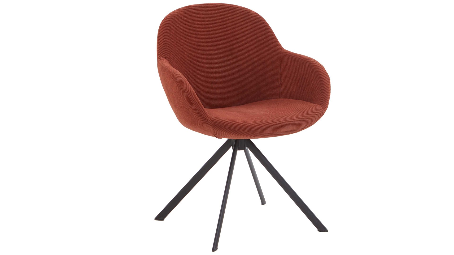 Der hochwertige NIEHOFF Armlehnstuhl Dacapo verkörpert moderne Eleganz und Gemütlichkeit. Mit dem mattschwarz lackierten Stativgestell aus robustem Eisen sowie dem trendigen kupferfarbenen Cordbezug überzeugt er sowohl optisch als auch qualitativ. Dank der Ergo-Schale mit Formschaum bietet der Designerstuhl für das Esszimmer extra hohen Sitzkomfort.