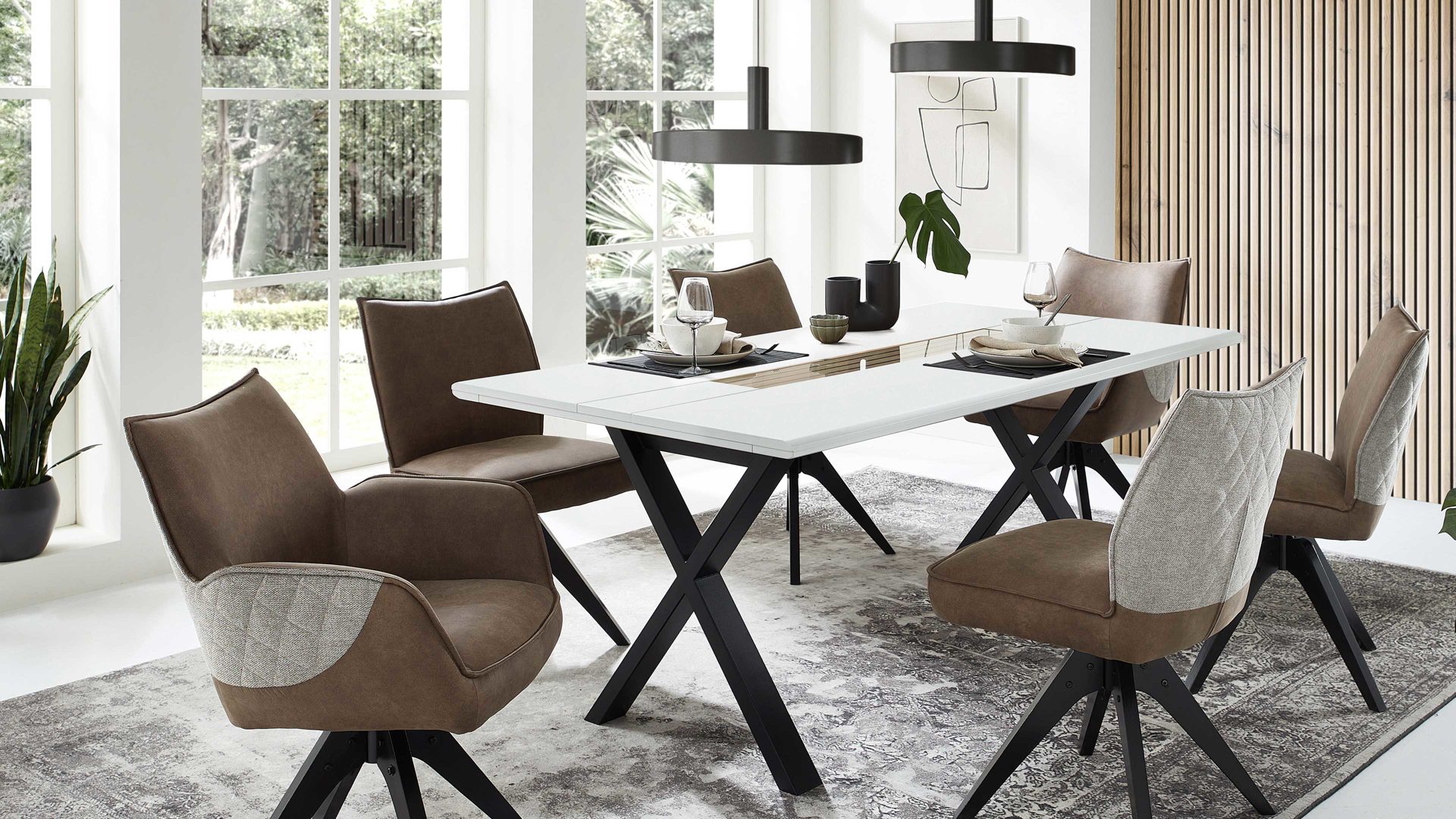 mattweiße Oberflächen, kombiniert mit Artisan Eiche-Nachbildung und grauem Parsolglas