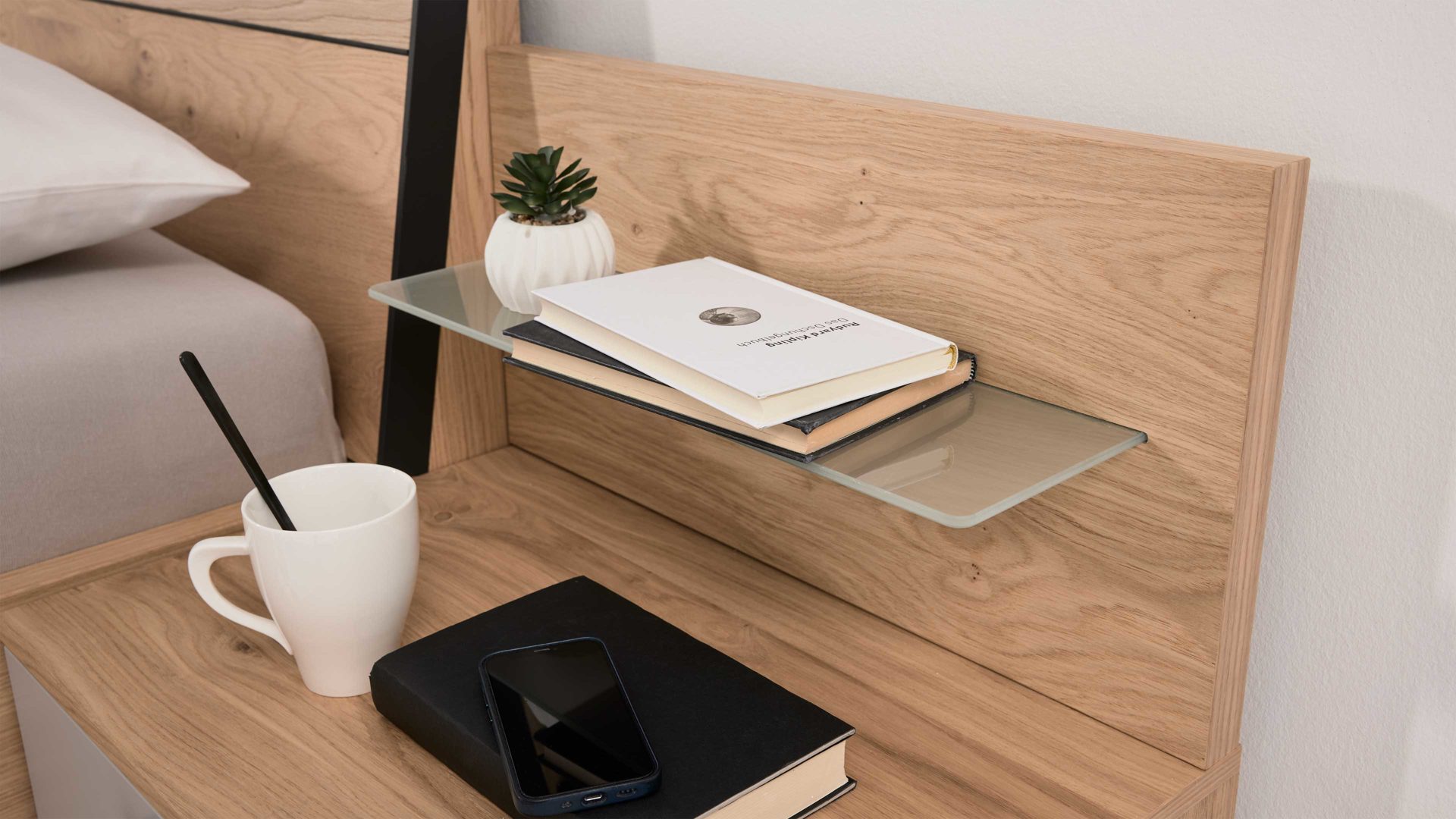 Die Kleiderschränke der Serie sind in drei unterschiedlichen Höhen erhältlich, sodass du sie optimal an die Raumhöhe deines Schlafzimmers anpassen kannst. Auch bei den Bettgestellen genießt du volle Gestaltungsfreiheit: Entscheide dich für ein klassisches Holz-Kopfteil oder ein gepolstertes Modell und kombiniere dein Wunschbett in verschiedenen Größen – ganz nach deinem Schlafkomfort und deinem Stil.