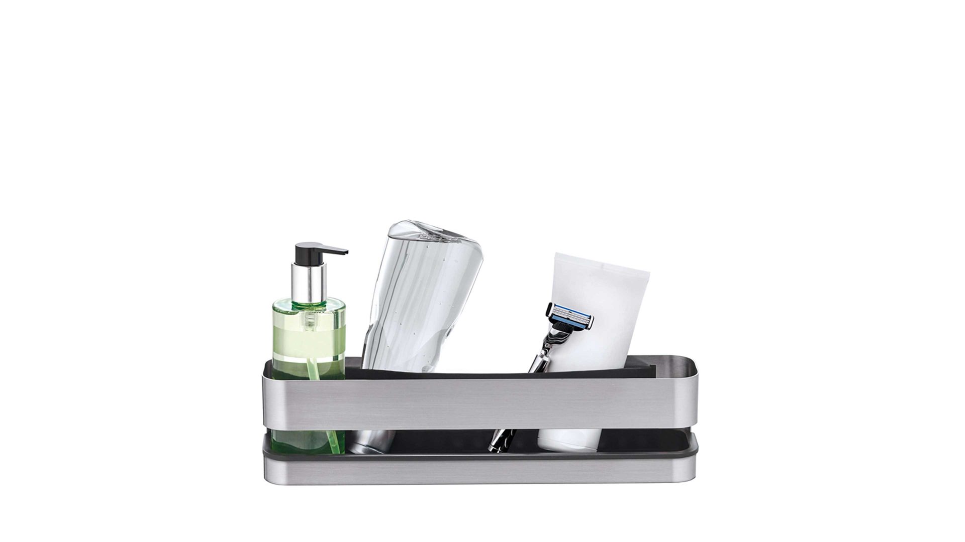 blomus Duschkorb Nexio | matter Edelstahl | schwarzer Kunststoff | entnehmbarer Kunststoffeinsatz | innen mit breitem Gummiband – hält auch Kleinteile sicher fest | Lieferung inklusive Befestigungsmaterial | auch ohne Bohren montierbar | Maße ca. 12 x 9 x 25 cm (BxHxL) | verschiedene Ausführungen bestellbar | Badaccessoire-Serie
