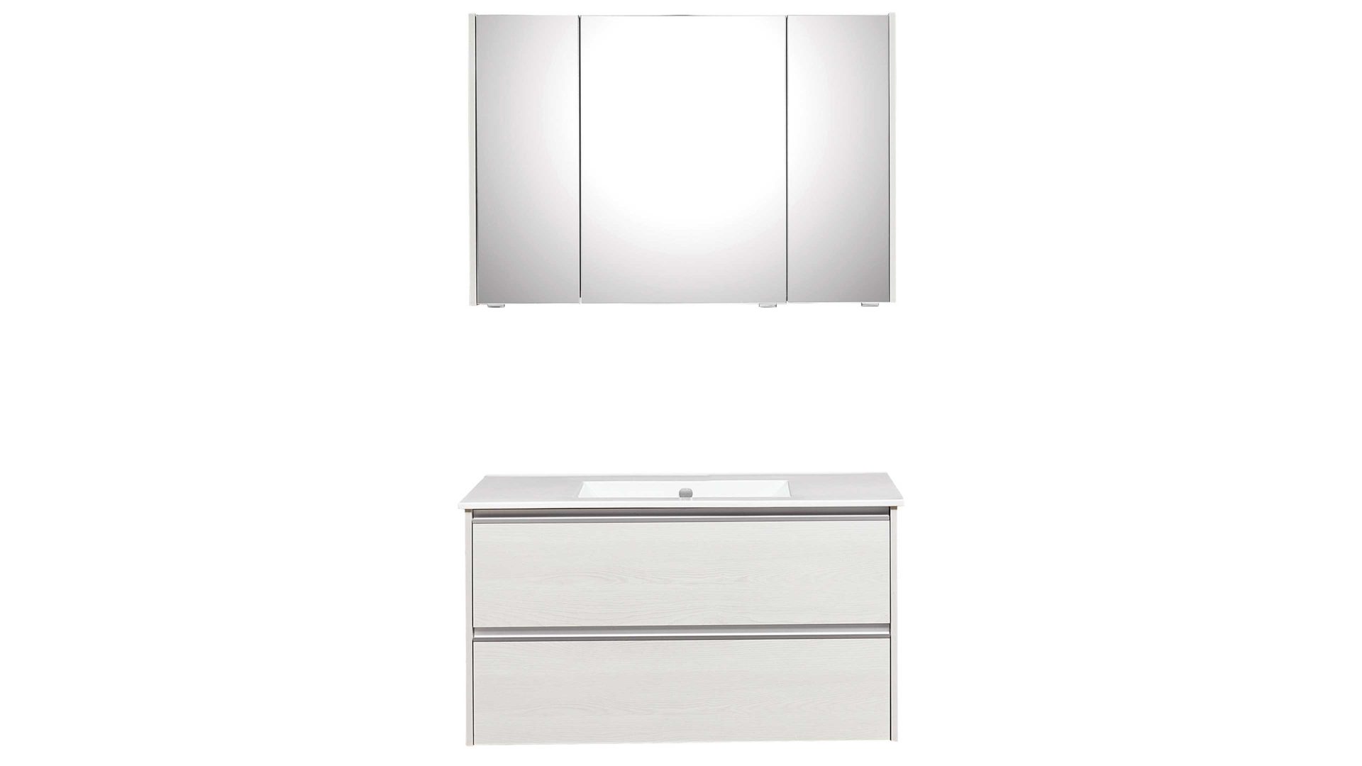 Maße Einzelartikel: | Spiegelschrank ca. 103 x 70 x 17 cm (B/LxHx) Waschbecken ca. 101 x 2 x 47 cm (B/LxHxT) Waschbeckenunterschrank ca. 98 x 54 x 46 cm (BxHxT) | |