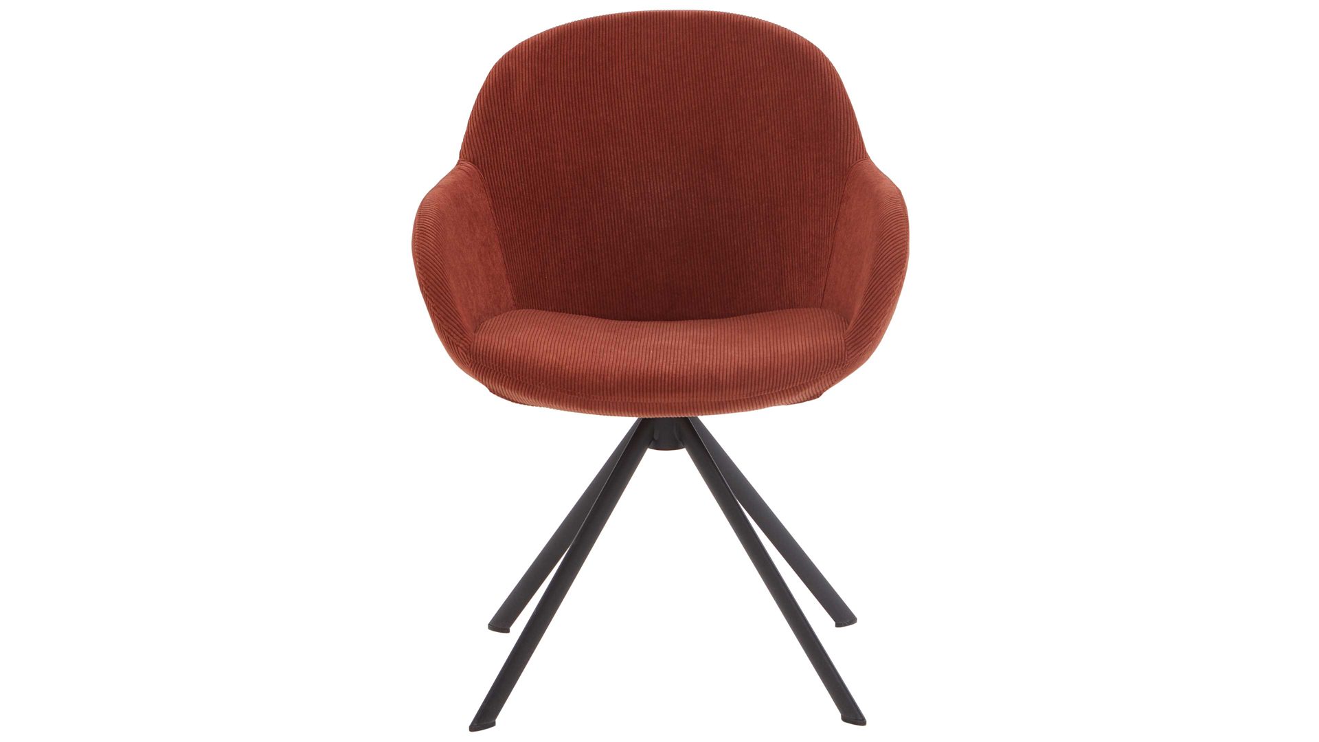 Der hochwertige NIEHOFF Armlehnstuhl Dacapo verkörpert moderne Eleganz und Gemütlichkeit. Mit dem mattschwarz lackierten Stativgestell aus robustem Eisen sowie dem trendigen kupferfarbenen Cordbezug überzeugt er sowohl optisch als auch qualitativ. Dank der Ergo-Schale mit Formschaum bietet der Designerstuhl für das Esszimmer extra hohen Sitzkomfort.