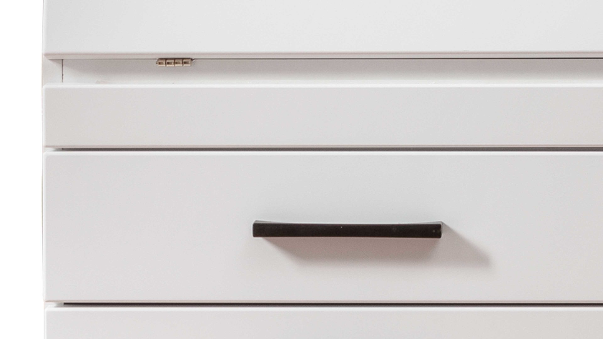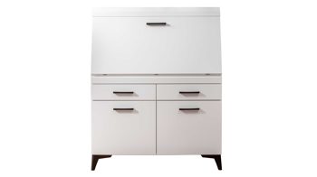 Mit den schlicht mattweißen Oberflächen und schwarzen Griffen strahlt er puristische Eleganz aus. Alternativ steht der modern designte Sekretär Secret noch in einer zweiten Farbvariante zur Wahl.
