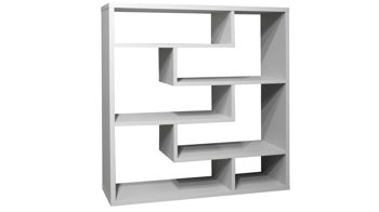 Die asymmetrische Anordnung der Böden verleihen dem Standregal ein außergewöhnliches Aussehen. Auf vier Regalböden haben Sie genug Stauraum in Ihrem Arbeitszimmer für Unterlagen und Bücher oder für Bilderrahmen und andere Dekorationen in Ihrem Wohnzimmer.
