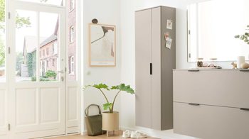 Der Hänge-Mantelschrank lässt sich optimal mit weiteren Möbeln der Interliving Garderoben Serie 6013 kombinieren. Für ein stimmiges Gesamtbild kannst du den optionalen Garderobenspiegel mit LED-Beleuchtung ergänzen – ideal, um deinen Eingangsbereich hell und einladend zu gestalten. Die flexibel kombinierbaren Elemente dieser Dielenmöbel-Serie erlauben eine individuelle Planung für kleine oder große Flure.