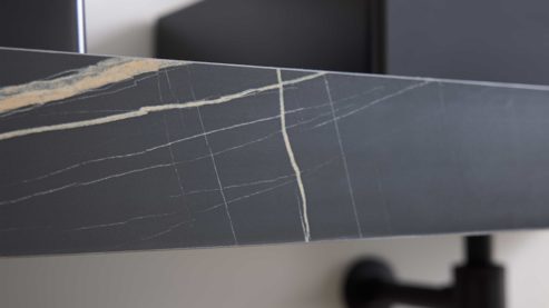 Mit dem edlen Konsolen-Set in Marmor Venato Nero-Nachbildung aus der Interliving Bad Serie 3725 entscheidest du dich für ein Badmöbel mit Statement-Charakter. In Kombination mit zwei mattschwarzen Duratek®-Aufsatzwaschbecken entsteht eine elegante, funktionale Einheit, die modernen Ansprüchen an Design und Alltagstauglichkeit gerecht wird – ideal für stilvolle Familienbäder oder Gästebereiche.