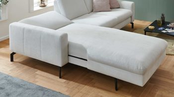 Mittels Handschalter lässt sich das Sofaelement bequem bis zur Liegeposition verstellen. Dadurch können Sie beim Lesen, Fernsehen oder puren Entspannen eine besonders komfortable Haltung einnehmen und einfach relaxen. Im komplett ausgefahrenen Zustand beträgt die Liegelänge auf dem Canapé ca. 211 cm.