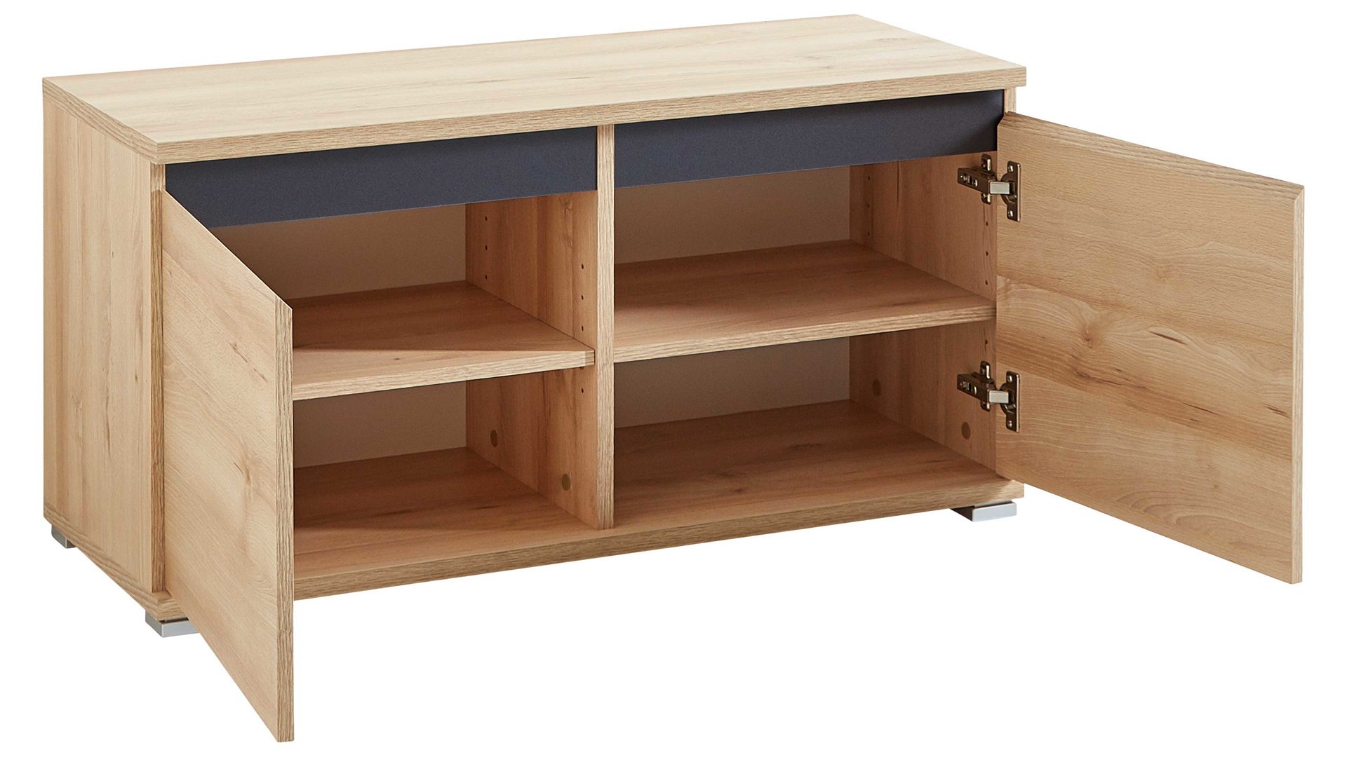 Insgesamt bietet die Garderobenbank mit zwei Türen und je einem Boden dahinter viel Stauraum für Ihre Schuhe und fasziniert zugleich außen mit Applikationen in Anthrazit. Des Weiteren verfügt das Garderobenmöbel über ABS-Kanten, eine Türdämpfung und ein griffloses Design. Dank der Maße von ca. 96 x 52 x 40 cm (BxHxT) benötigt die Schuhbank eine geringe Stellfläche. Ergänzende Möbel der Serie Lissabon erhalten Sie hier im Shop.