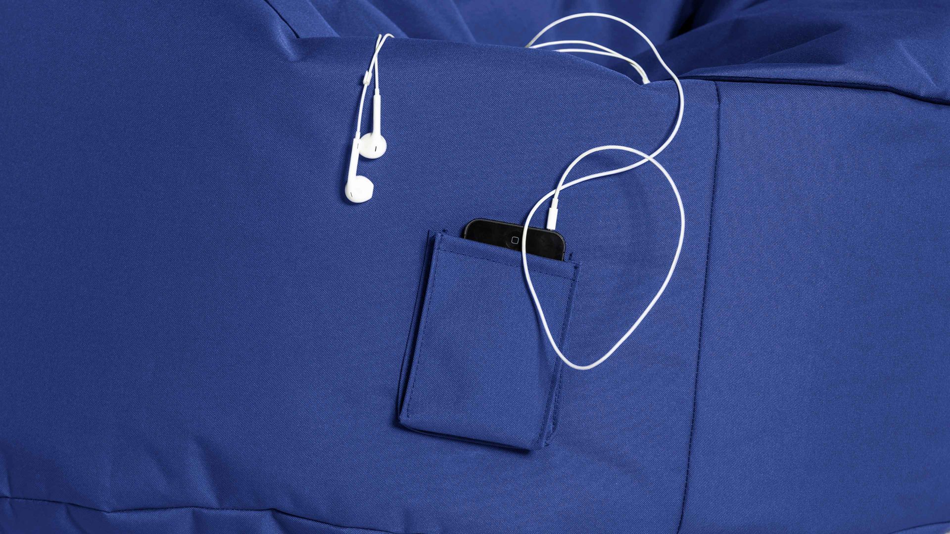 Der dunkelblaue Sitzsack-Sessel Made in Germany ist genau das richtige Sitzmöbel zum Lesen, Entspannen oder zum Fernsehen.