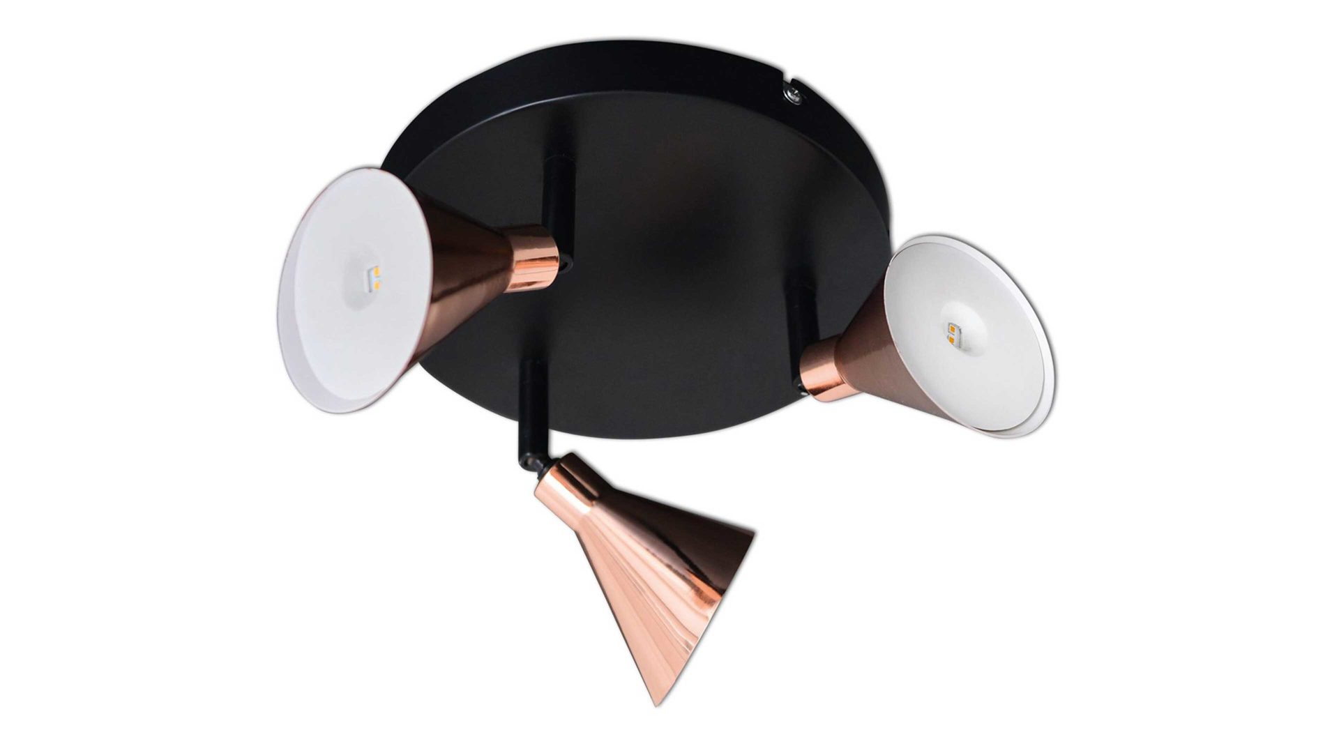 Geliefert wird die ansprechend gestaltete Wandleuchte mit drei LEDs. Die Leuchtmittel bringen eine Leistung von jeweils 10 Watt. Durch den Lichtstrom von 900 Lumen und die Farbtemperatur von 3000 Kelvin senden die Leuchtdioden sehr helles und angenehm warmweißes Licht aus. Die LEDs sind der hohen Energieeffizienzklasse A+ zugeordnet und haben eine Lebensdauer von bis zu 20.000 Stunden. Zu den Vorteilen des Wand- und Deckenspots gesellt sich auch die Dreh- und Neigbarkeit der Lampenschirme.