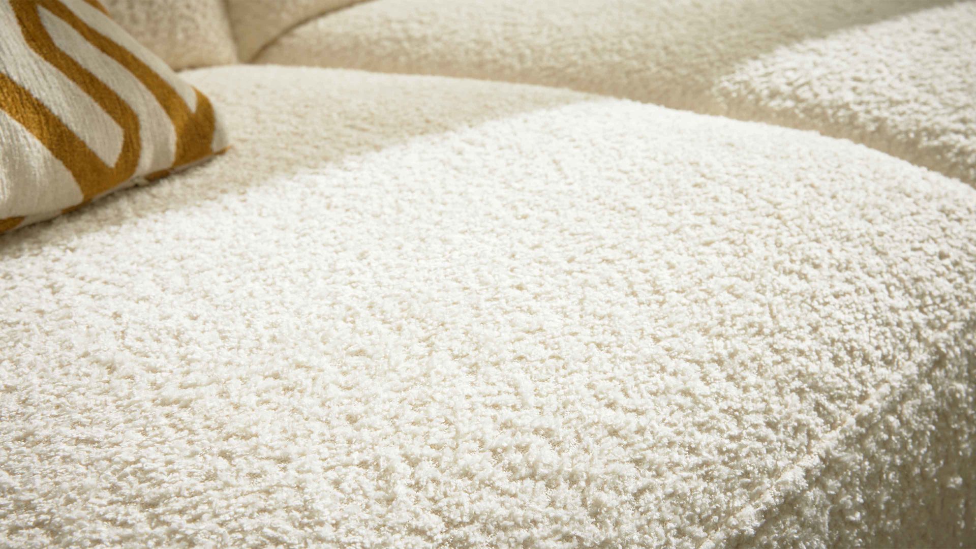 Die Kaltschaumpolsterung sorgt für ein angenehm weiches, aber stützendes Sitzgefühl – ideal zum Sitzen oder Hochlegen der Beine. Der weiche Chenille-Stoff in Teddyoptik überzeugt durch seine angenehm warme Haptik und ein wohnliches Erscheinungsbild. Dezente Ton-in-Ton-Kappnähte unterstreichen das zurückhaltend elegante Design. Die schwarzen Metall-Profilfüße sorgen für einen stabilen Stand und runden das Gesamtbild modern ab.