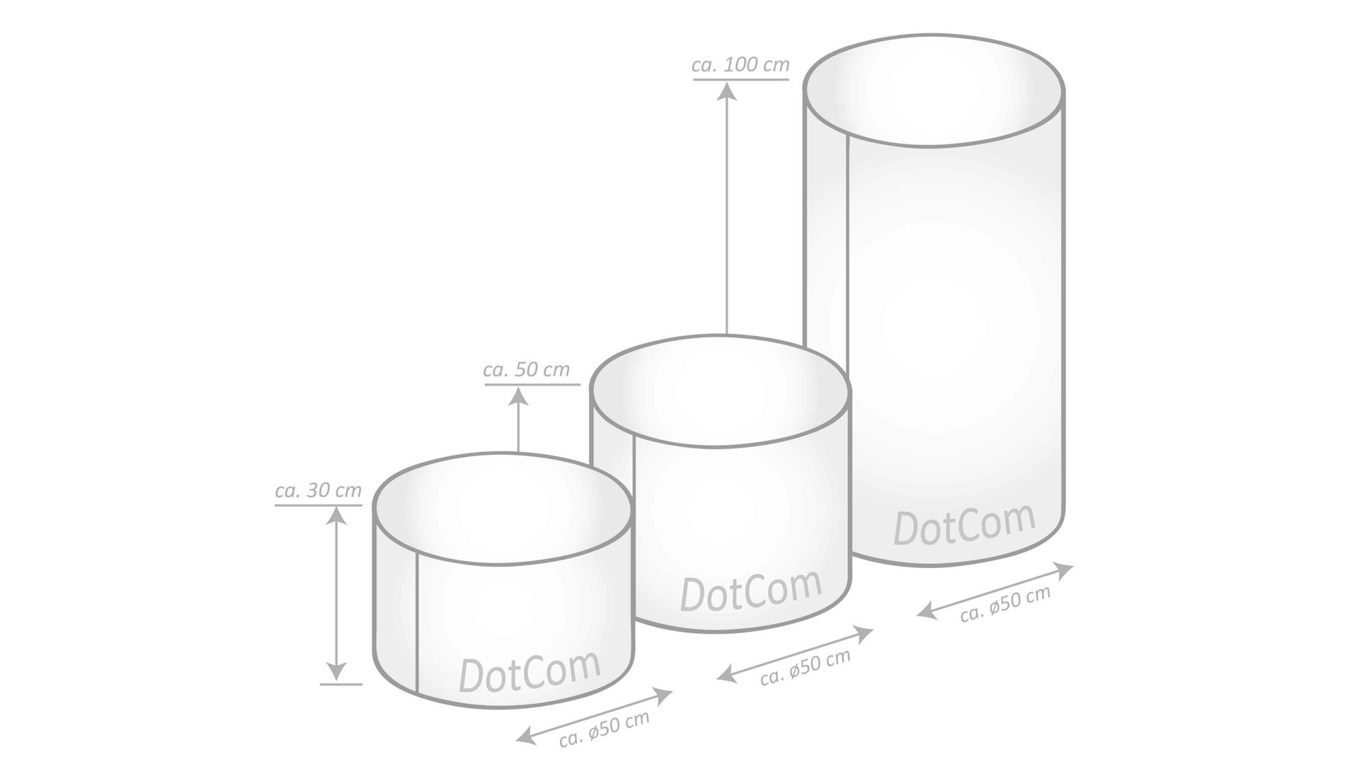 Dank des Durchmessers von ca. 50 cm, der Höhe von ca. 100 cm und der Füllung von ca. 200 Litern steht der Sitzsack platzsparend in einer Ecke und verwandelt sich nach Bedarf in ein Sitzmöbel oder einen Fußhocker.
