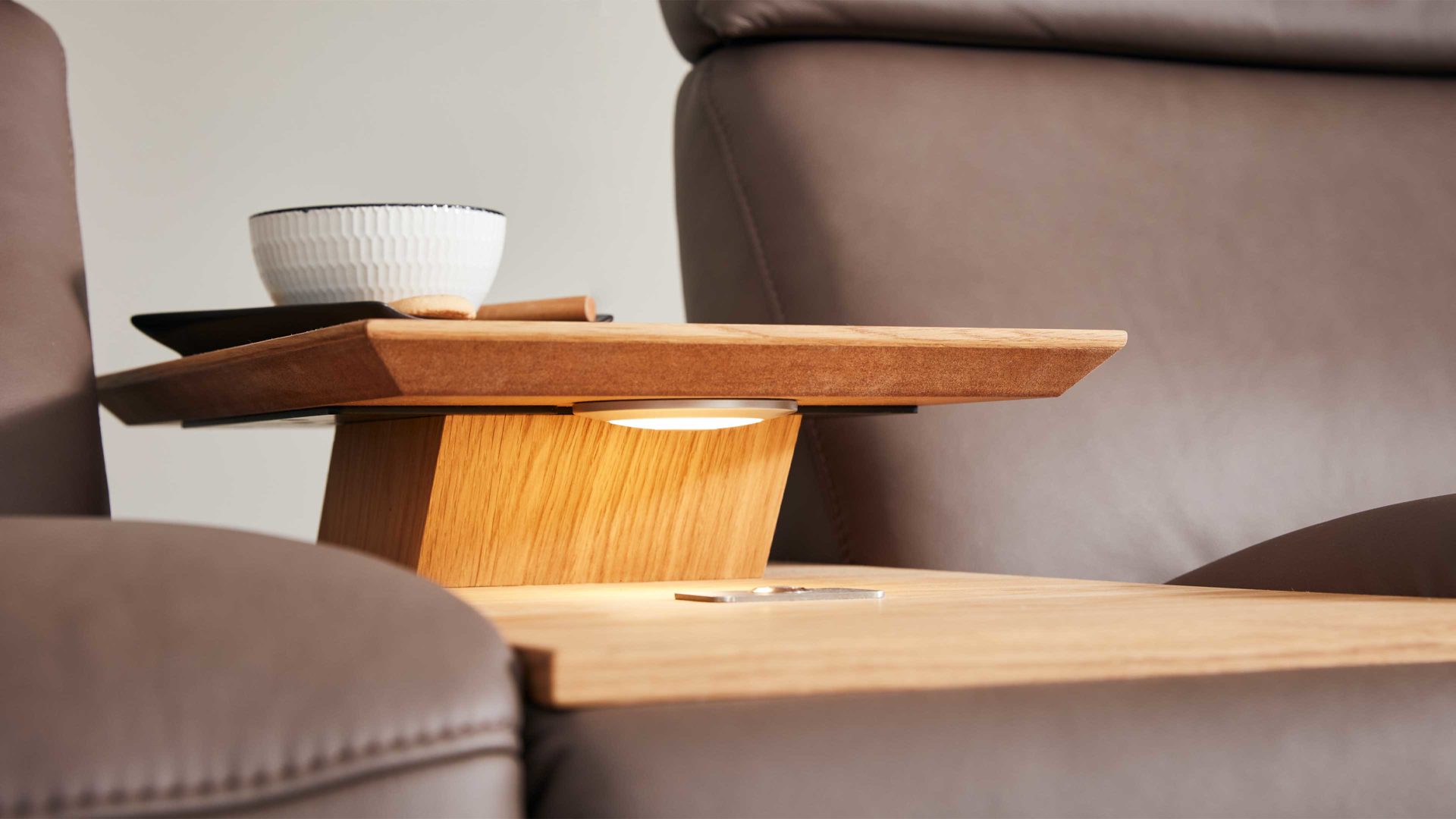 mit beleuchtetem Wildeiche-Zwischentisch inklusive praktischem USB-Anschluss