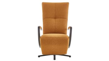 Er verbindet einen senffarbenen Stoffbezug mit einem mattschwarzen Metall-Sternfuß sowie einer mattschwarzen Metall-Armlehne mit bequemer Polsterauflage. Dank der hochwertigen PUR-Schaumpolsterung genießen Sie auf diesem TV-Sessel hervorragenden Sitzkomfort und können so richtig relaxen.