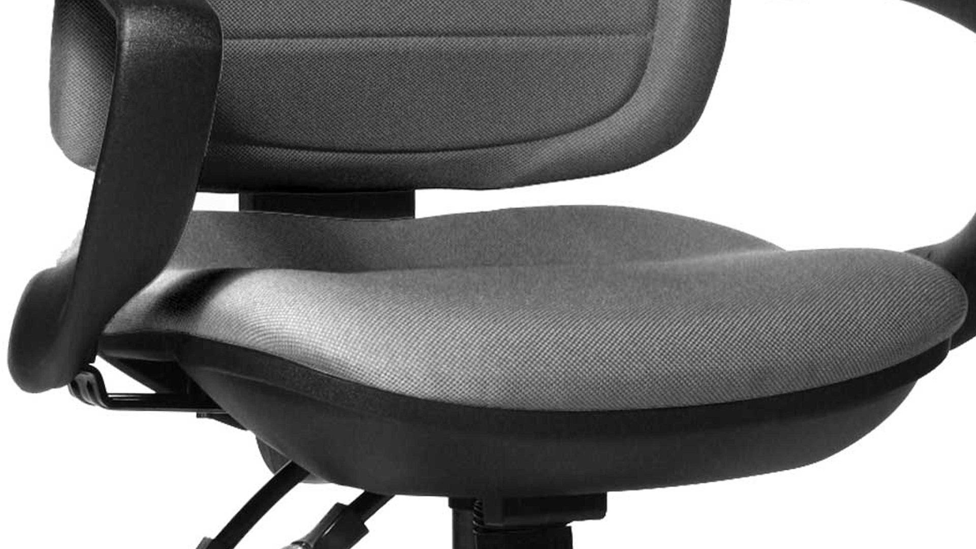 Das schwarze Gestell und der gesteppte Bezug sorgen für ein edles Aussehen und bringen eine professionelle Atmosphäre in Ihren Arbeitsbereich. Der Drehstuhl mit schwarzen Armlehnen verfügt über eine hohe, verstellbare Rückenlehne und einen speziellen Bandscheibensitz, der dank seiner Federkraft individuell auf Ihre Sitzbedürfnisse einstellbar ist.