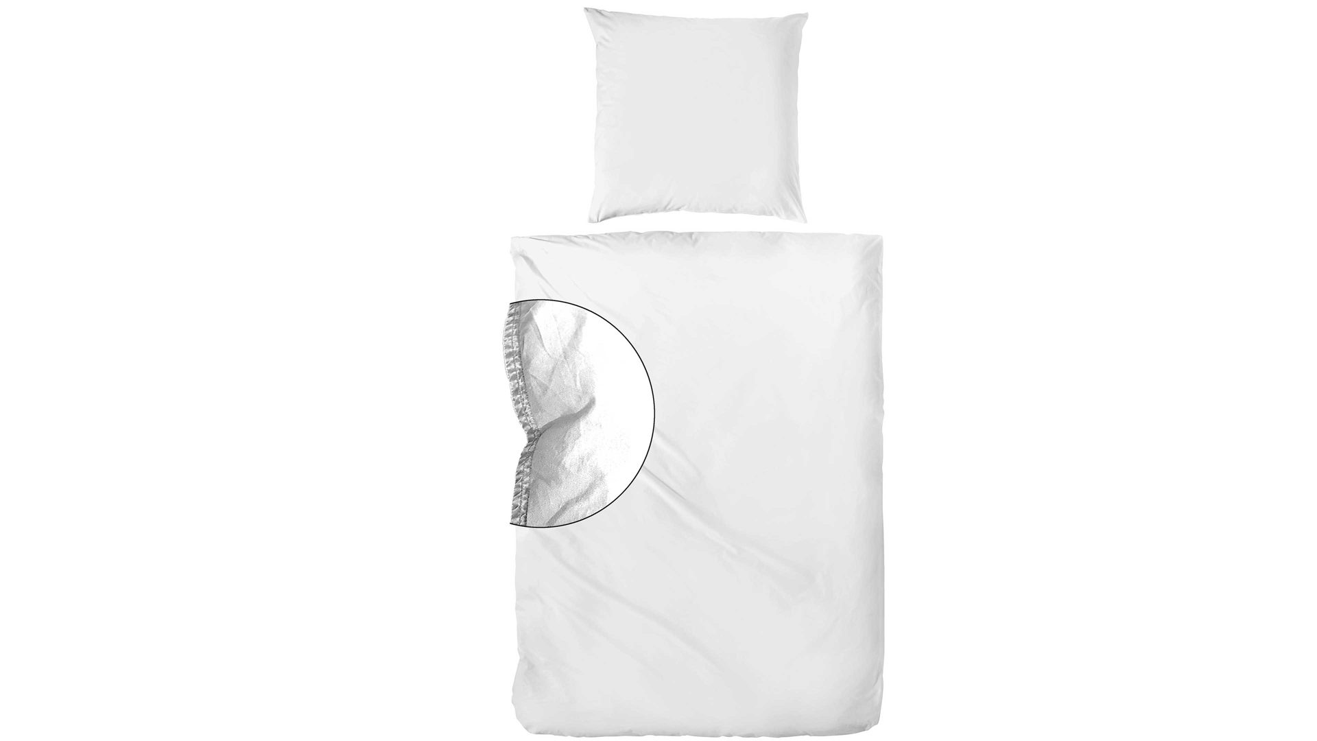 Das weiße Bettwäsche-Set in Übergröße aus Renforce-Baumwolle kommt in Stone Washed-Optik daher. Das mittelfeine strapazierfähige Gewebe verfügt über eine ausgesprochen angenehme Haptik. Die temperaturausgleichende Wirkung ist ein weiterer Pluspunkt dieser schlichten Bettwäsche. Der weiche, angenehme Griff wird ergänzt durch eine glatte Oberfläche beider Wäschestücke.