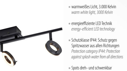Schutzklasse IP44 - spritzwassergeschützt, die Lampe lässt sich auch in Badezimmern oder Küchen einsetzen