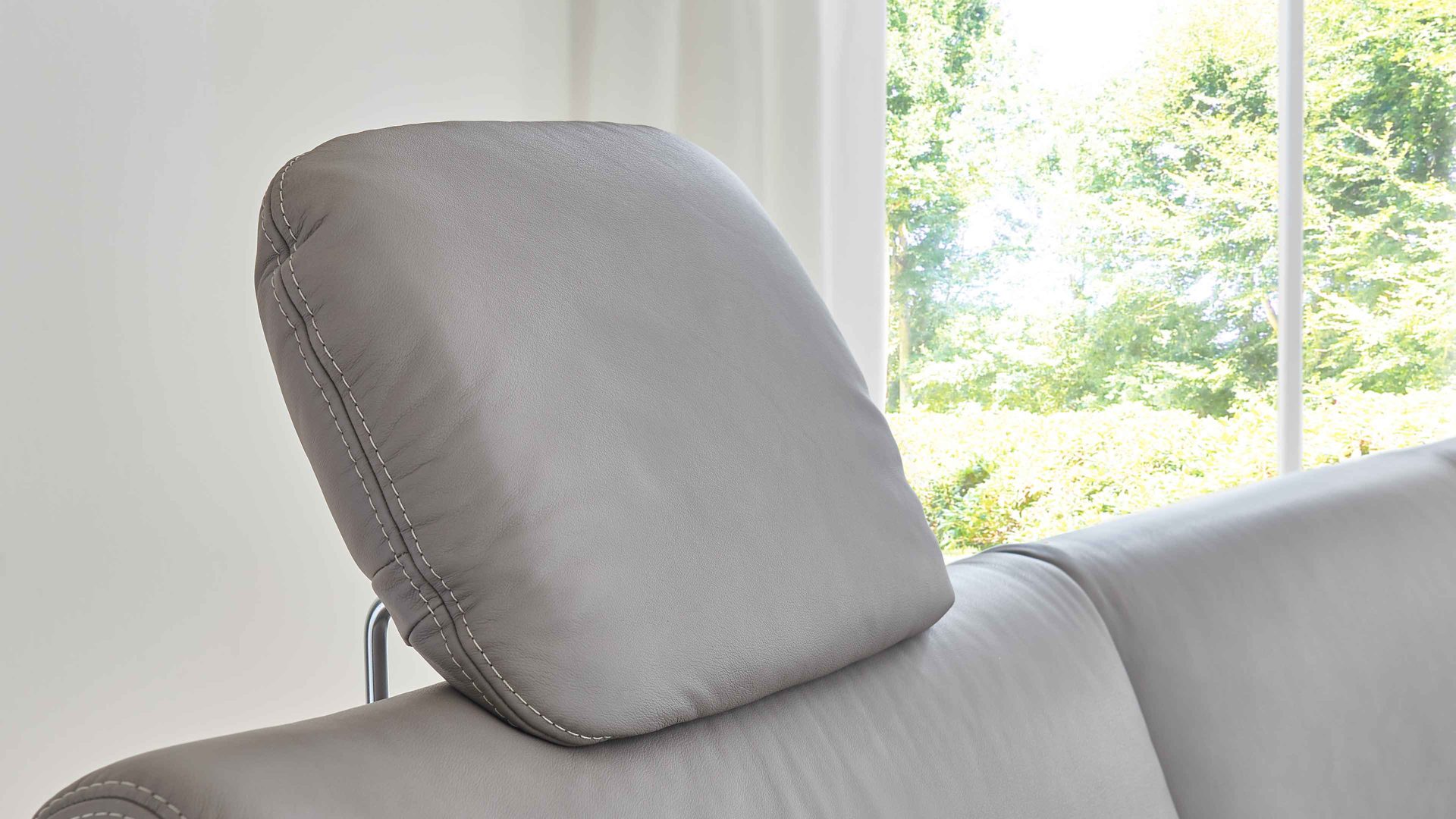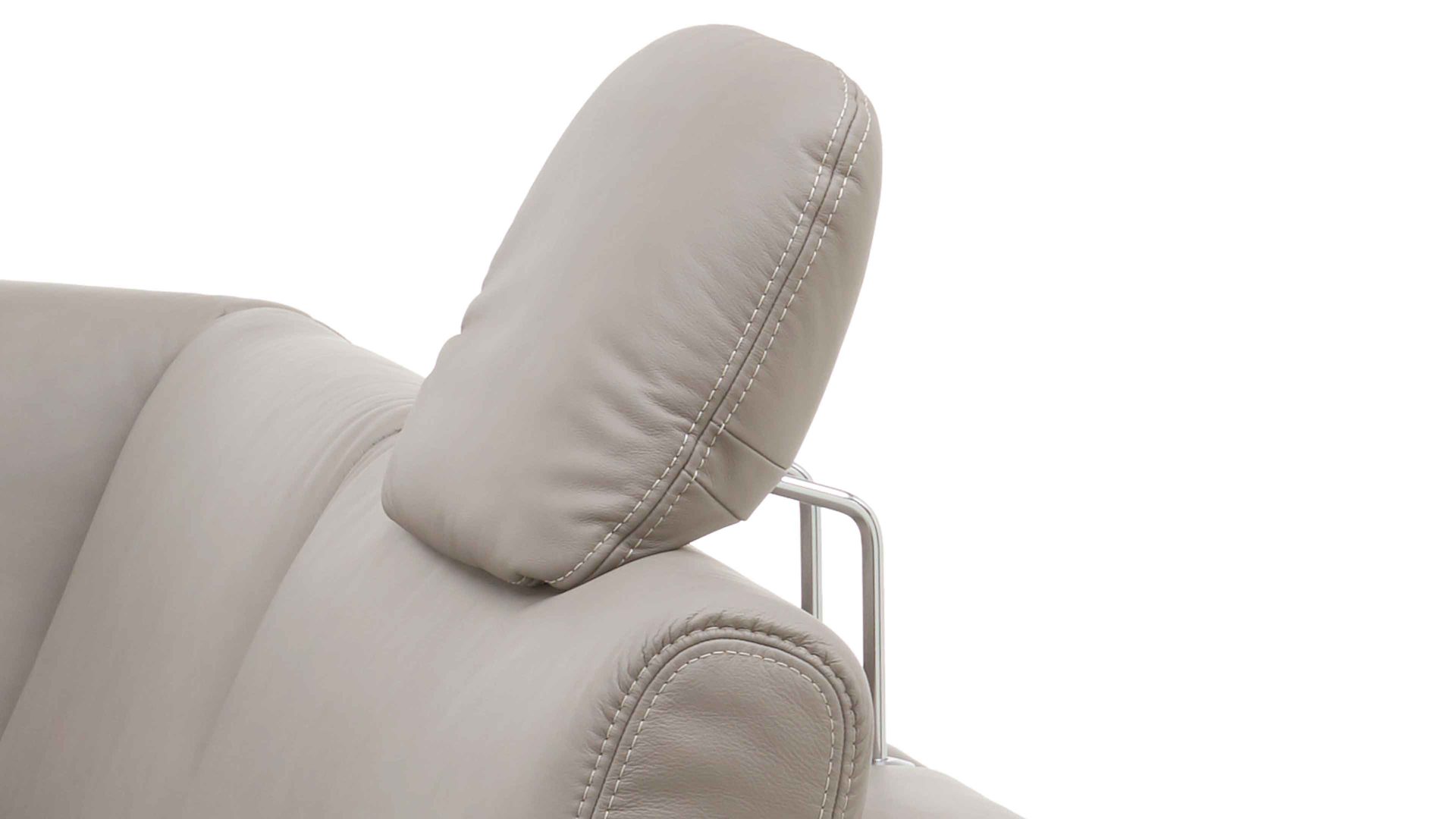 Die Comfort-Kopfstütze CKS fungiert als Mehrpreis-Zubehör für diverse Elemente aus der Modulmaster-Polsterserie MM-PN1102. Sie ist mit granitfarben pigmentiertem Glattleder bezogen und mit einer Kopfstützenvorrichtung aus verchromtem Metall ausgestattet.