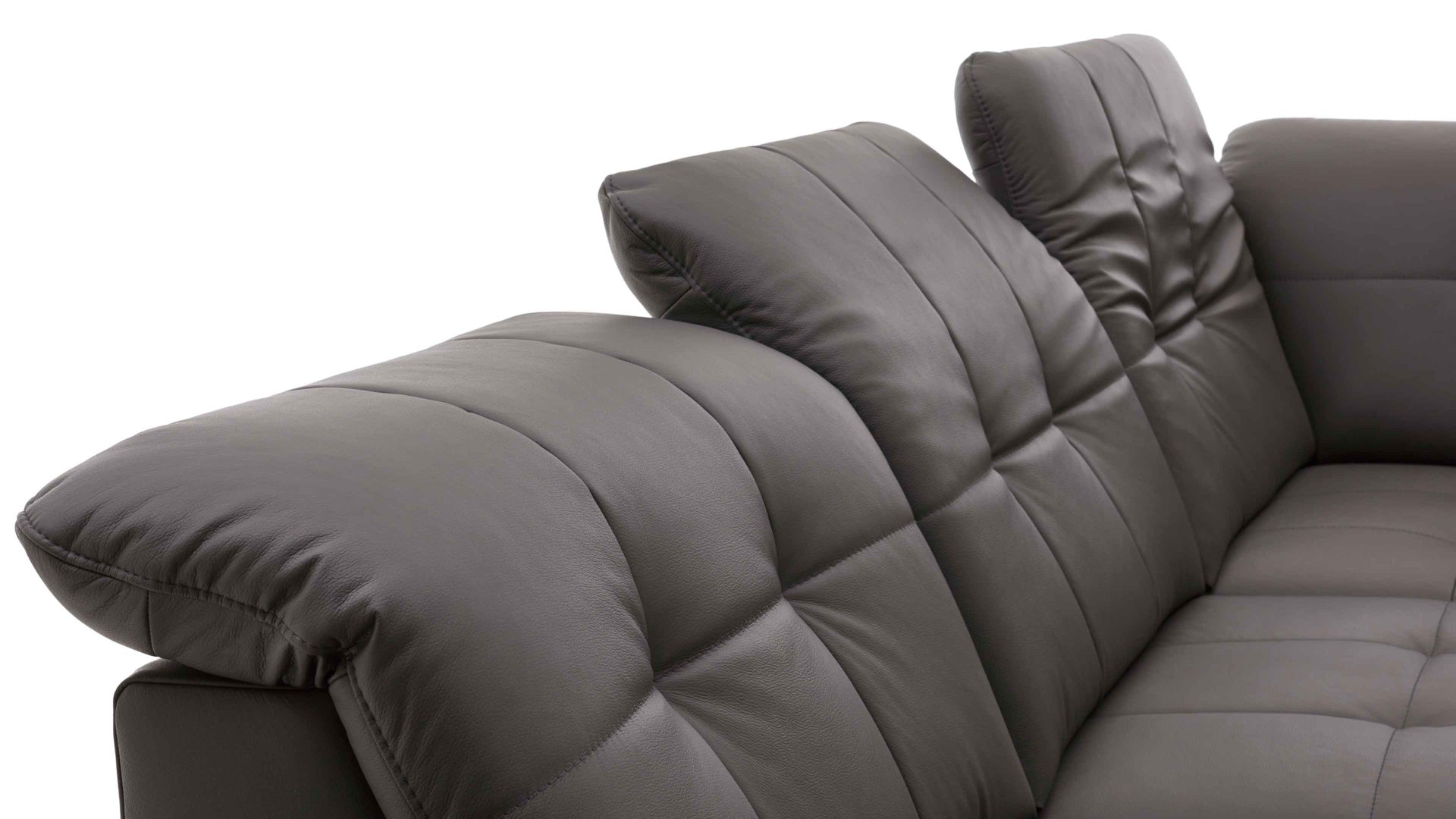 Die Kopfpolsterverstellung mit Faltenoptimierung ist ein Funktions-Mehrpreis für verschiedene Möbel aus dem Modulmaster-Polsterprogramm MM-PN1078. Mittels Rasterbeschlag können Sie das Kopfteil manuell mehrfach verstellen, sodass die Gesamthöhe der jeweiligen Couch von ca. 85 bis 100 cm variiert.