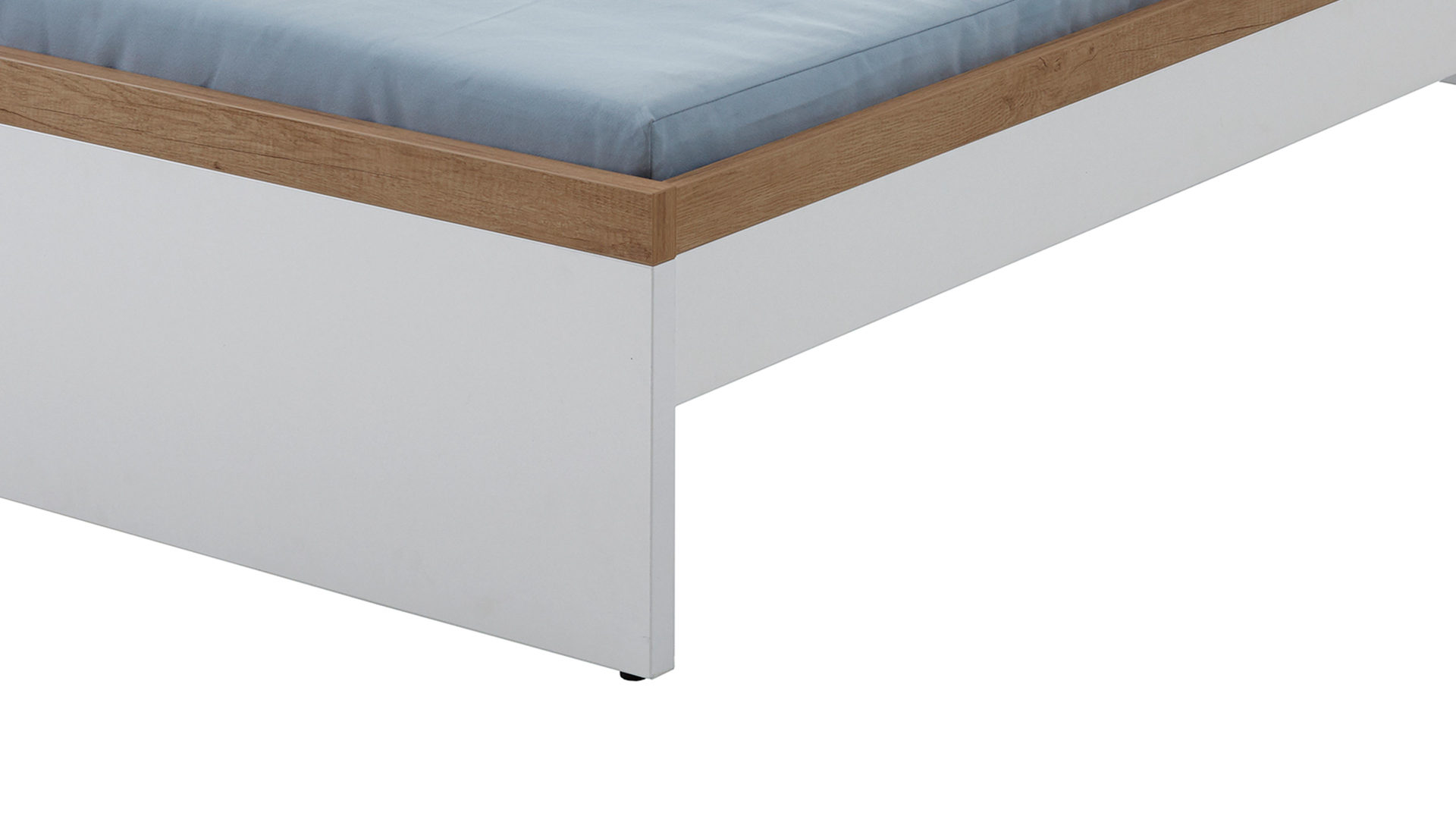 Die hochwertige PAIDI Studioliege Oscar begeistert mit der Kombination aus Nebraska-Eiche-Nachbildung und kreideweißen Melaminoberflächen. Letztere zeichnen sich durch ihre Lichtechtheit sowie die besonders ausgeprägte Kratz- und Stoßfestigkeit aus. Überdies sind sie sehr pflegeleicht. Der Holzton verströmt warmen, natürlichen Charme und harmoniert wunderbar mit dem Kreideweiß. Zusammen sorgen die Nuancen für eine moderne und elegante Optik. Das Einzelbett bietet kein Kopfteil.