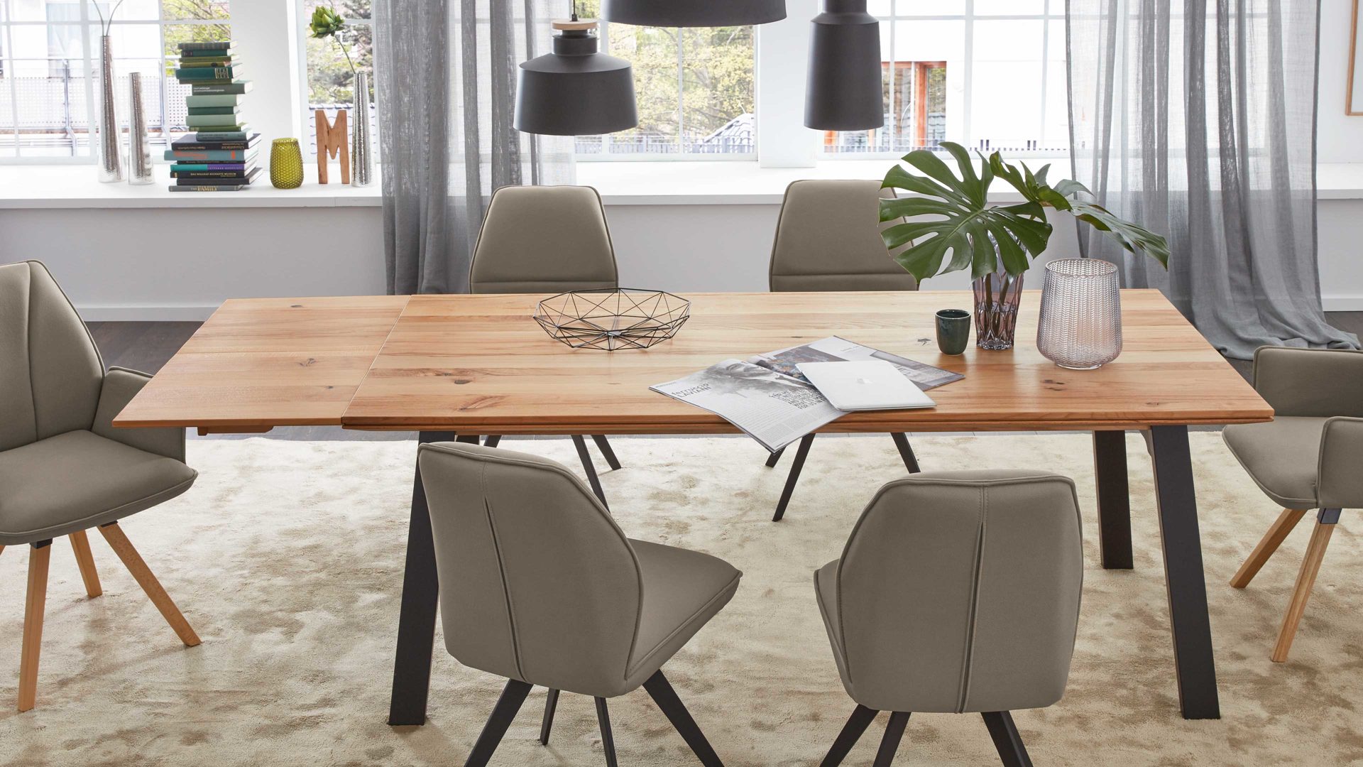 Der Ausziehtisch aus der Interliving Esszimmer Serie 5102 kombiniert natürliche Ausstrahlung mit moderner Funktionalität – ideal für deinen Wohn- und Essbereich. Die Tischplatte aus Charakter-Kernbuche bringt warme, lebendige Maserungen in den Raum und sorgt für eine einladende, hochwertige Atmosphäre.
