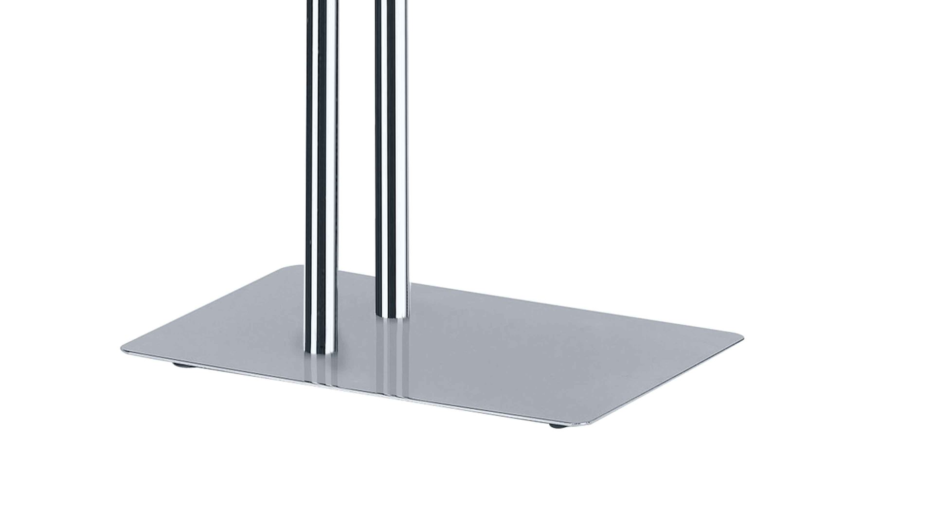 Sie haben die Wahl: Entweder Sie hängen zwei große oder mehrere kleine Handtücher auf die zwei feststehenden Stangen des Standmodells. Der Halter für Ihre Tücher steht auf einer Bodenplatte und hat die Maße von ca. 20 x 81 x 30 cm (BxHxL), womit das Modell sowohl in ein großes als auch ein kleineres Badezimmer passt.