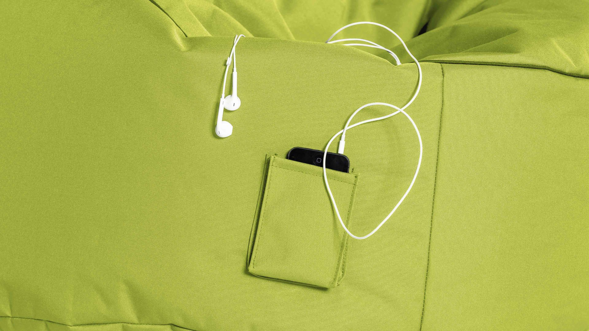 Der grüne Sitzsack-Sessel Made in Germany ist genau das richtige Sitzmöbel zum Lesen, Entspannen oder zum Fernsehen.