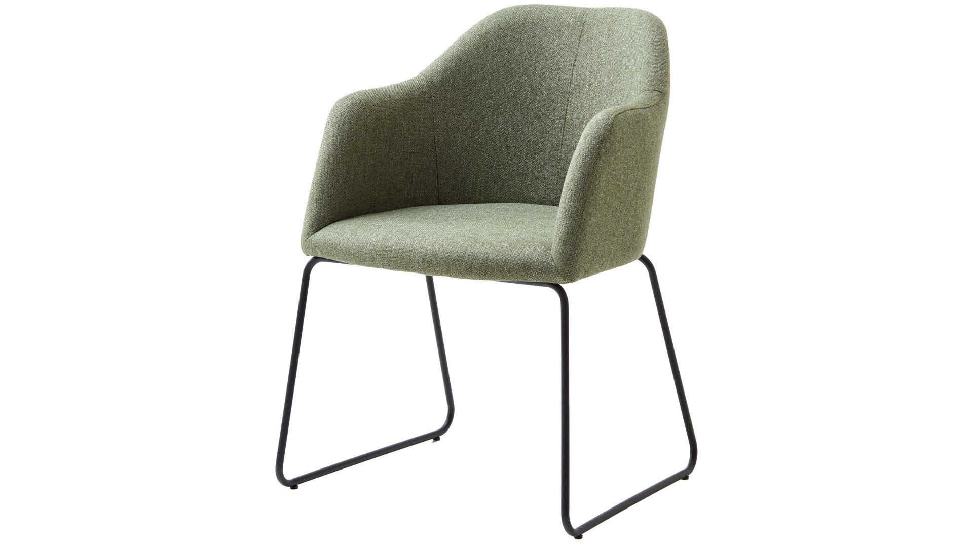 Darüber hinaus weiß er in puncto Komfort zu überzeugen. Ein schwarzes Stahldraht-Kufengestell bildet die robuste Basis. Das widerstandsfähige Material sorgt für die nötige Stabilität und die klassische Farbgebung bringt edles Flair in den Raum. Attraktiv abgerundet wird der Polsterstuhl durch den blassgrünen Webstoffbezug. Die außergewöhnliche Farbe wirkt elegant und schafft durch die helle Nuance einen interessanten Kontrast zum Gestell. Einen feinen Akzent setzt die Steppnaht im Rücken des Schalensitzes.