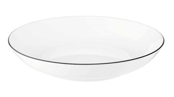 Seltmann Lido | eckiger Suppenteller | weißes Hartporzellan mit filigranem schwarzen Rand | spülmaschinenfest | mikrowellengeeignet | stapelbar | backofenfest | Durchmesser ca. 21 cm | Maße ca. 21 x 4 x 21 cm (BxHxL) | Made in Germany | individuell kombinierbare Geschirrserie