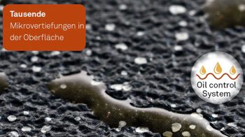 mit Oil Control System: besonders geformte Oberflächenstruktur für flächige, gleichmäßige Ölverteilung
