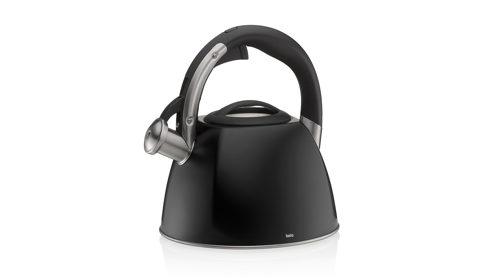 Schwarzer Wasserkessel mit Pfiff: der Wasserkessel Vitus aus 18/10 Edelstahl. Durch die große Grundfläche eignet er sich zum schnellen und energiesparenden Wasserkochen. Kocht das Wasser, ertönt ein Pfeifton. Er ist zudem gut zu handhaben, da der Klappmechanismus zum Öffnen des Deckels in den Griff integriert ist. Der Wasserkessel ist für alle Herdarten geeignet, auch für den Induktionsherd. Der Wasserkessel hat einen Durchmesser von ca. 22 cm. Volumen 2,4 Liter. Farbe: Schwarz matt