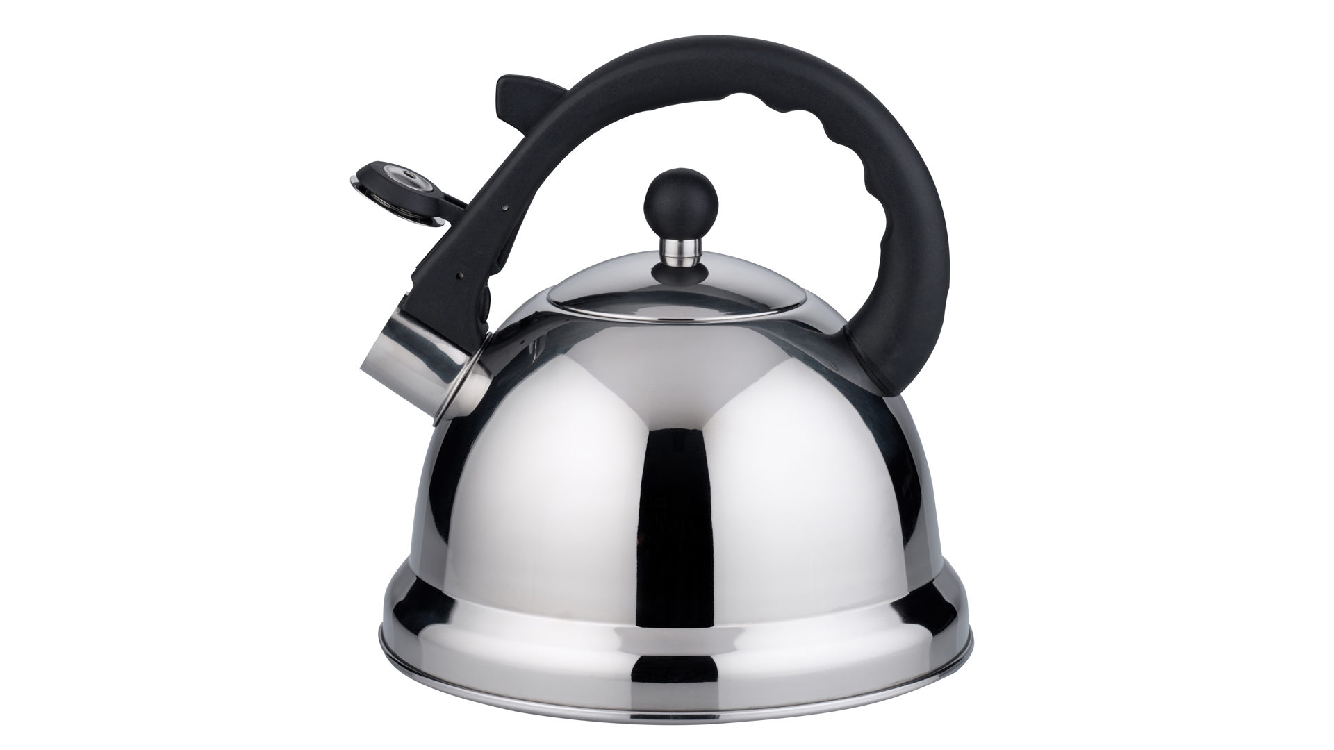 Traditioneller Wasserkessel aus Edelstahl mit Kapselboden, welcher sich für alle Herdarten eignet. Der Griff ist rutschfest und hat den Öffner zum Ausgießen des heißen Wassers praktisch integriert, sodass man nicht mit dem heißen Wasserdampf in Berührung kommt. Durchmesser ca. 22 cm, Fassungsvermögen 3 Liter, Farbvariante: Edelstahl.