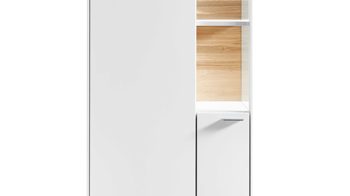 Hinter der links angeschlagenen Tür befinden sich drei verstellbare Holzböden, ein Konstruktionsboden sowie im verglasten Bereich ein kleiner fester Holzboden. Die Vitrine bietet auf insgesamt neun Abstellflächen praktischen und stilvollen Stauraum für Gegenstände, die Sie licht- und staubgeschützt aufbewahren oder gelungen in Szene setzen wollen. Ihre Maße betragen ca. 62 x 174 x 43 cm (BxHxT). Sie wird Ihnen bereits fertig montiert geliefert. Eine stimmungsvolle LED-Beleuchtung fungiert als optionales Zubehör.