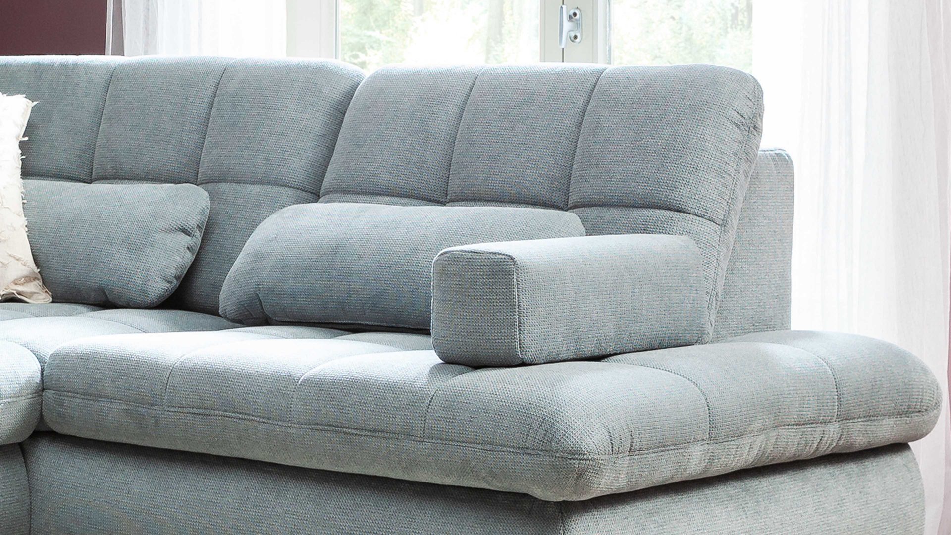 Es verbindet den hellen, stahlfarbenen Mikro-Chenillebezug Belle mit verchromten Metallfüßen für stabilen Stand. Die Federkernpolsterung im Sitz sorgt für hohen, festen Sitzkomfort. In der Rückenlehne gewährleistet die weiche Kaltschaumpolsterung bequemes Anlehnen. Demnach schafft die qualitativ erstklassige Eckkombination beste Voraussetzungen für viele entspannende Momente mit der Familie.