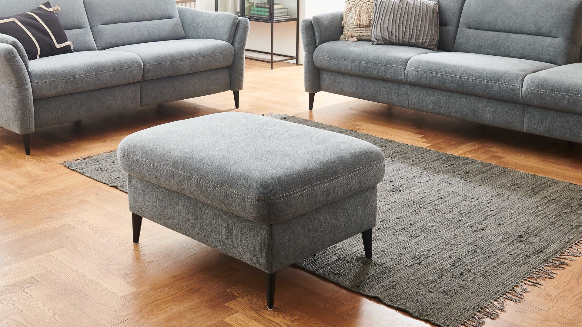 stahlfarbener Stoffbezug mit beiger Kontrast-Doppelsteppnaht