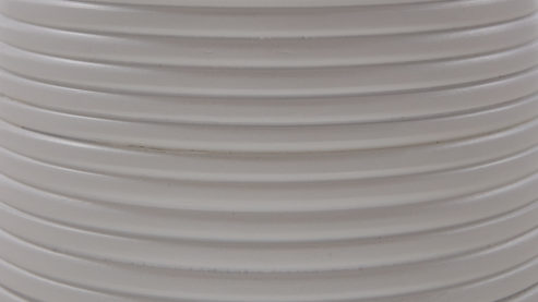 der Korpus mit einer geriffelten Oberfläche ist aus MDF mit mattweißer Oberfläche
