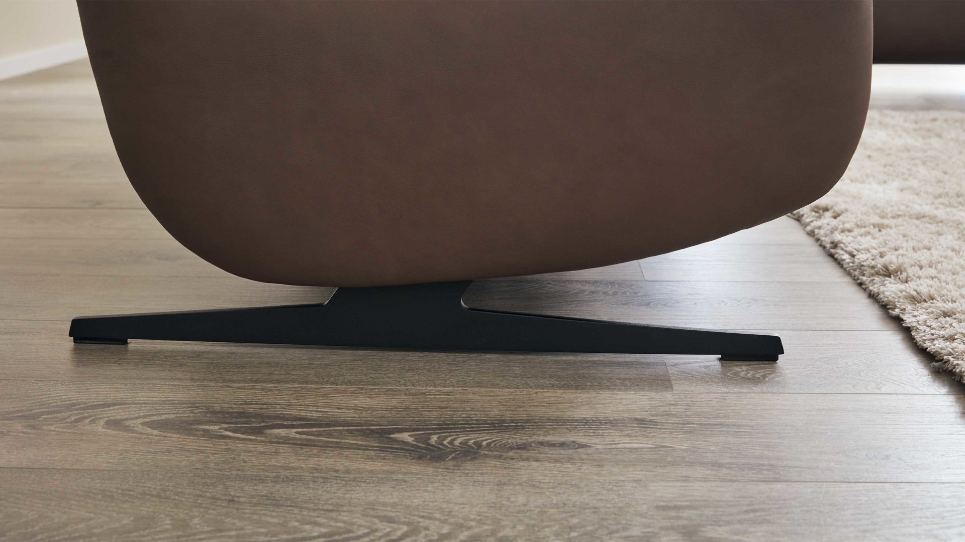 sattelfarbener LongLife-Lederbezug und anthrazitfarben pulverbeschichtete Kufen