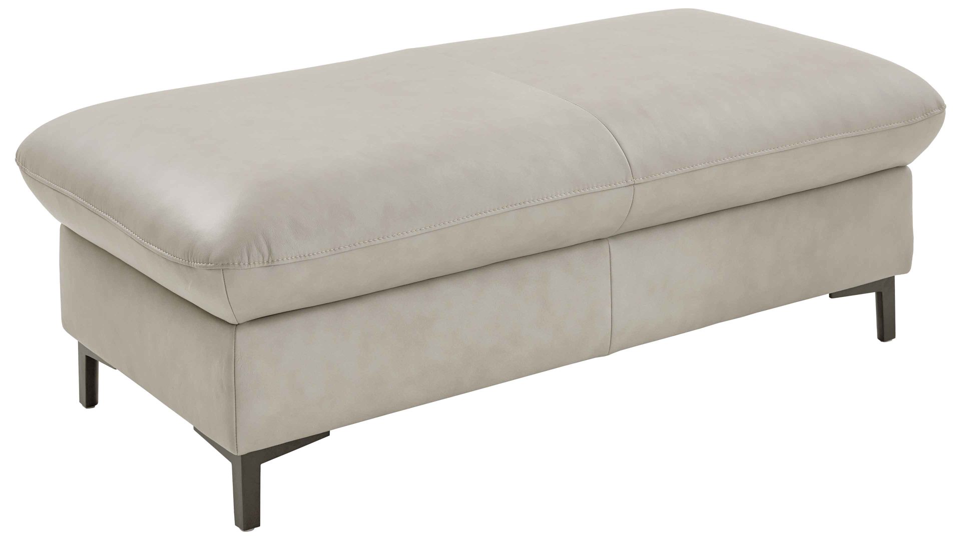 Der XXL-Funktionshocker aus der Modulmaster-Polsterserie MM-PN1161 kombiniert aluminiumfarbenes LongLife-Leder mit mattschwarzen Metall-Winkelfüßen. Er strahlt moderne Eleganz aus.