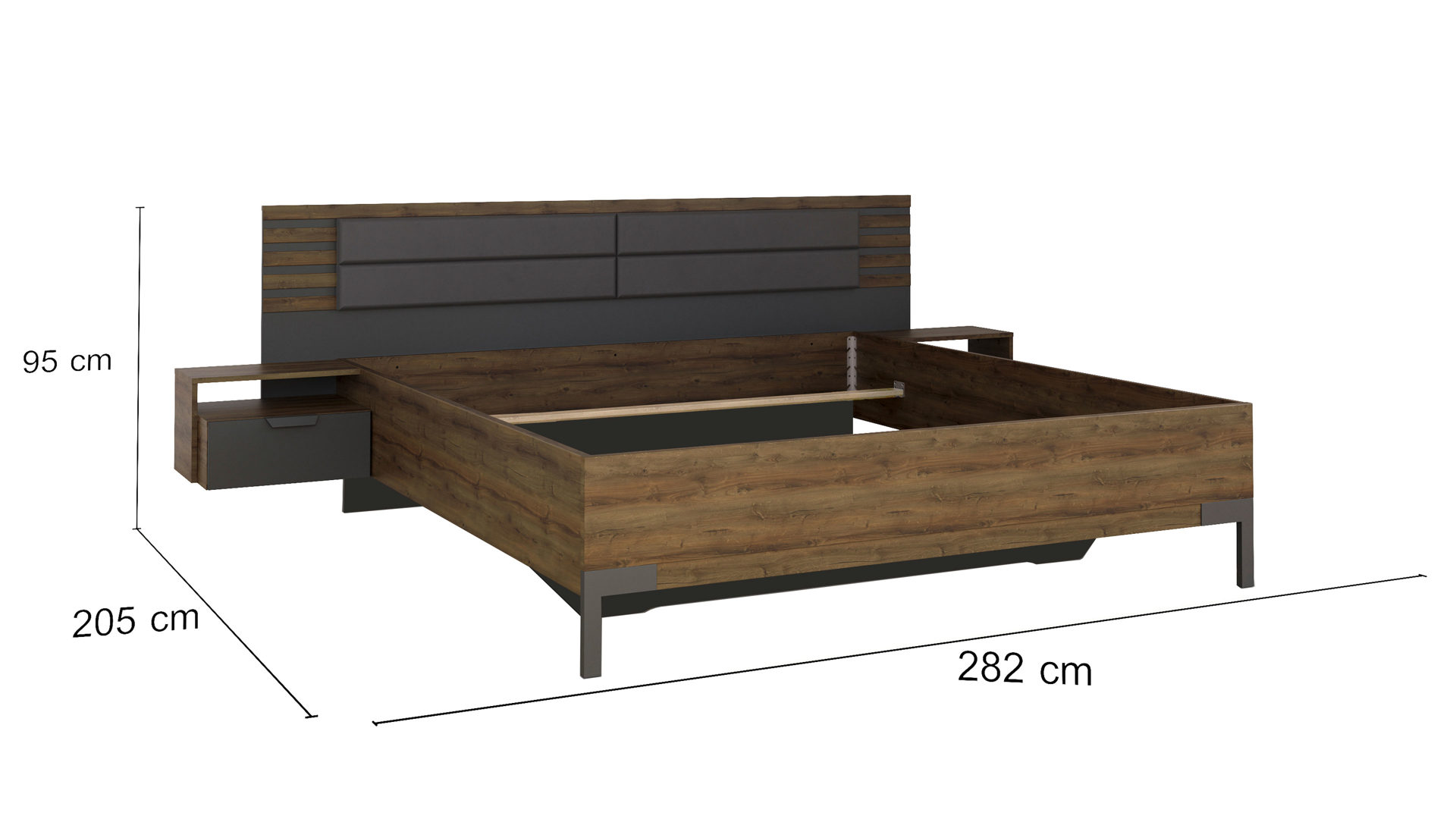 Grau-Metallic & Atlantic Oak - Liegefläche ca. 180 x 200 cm