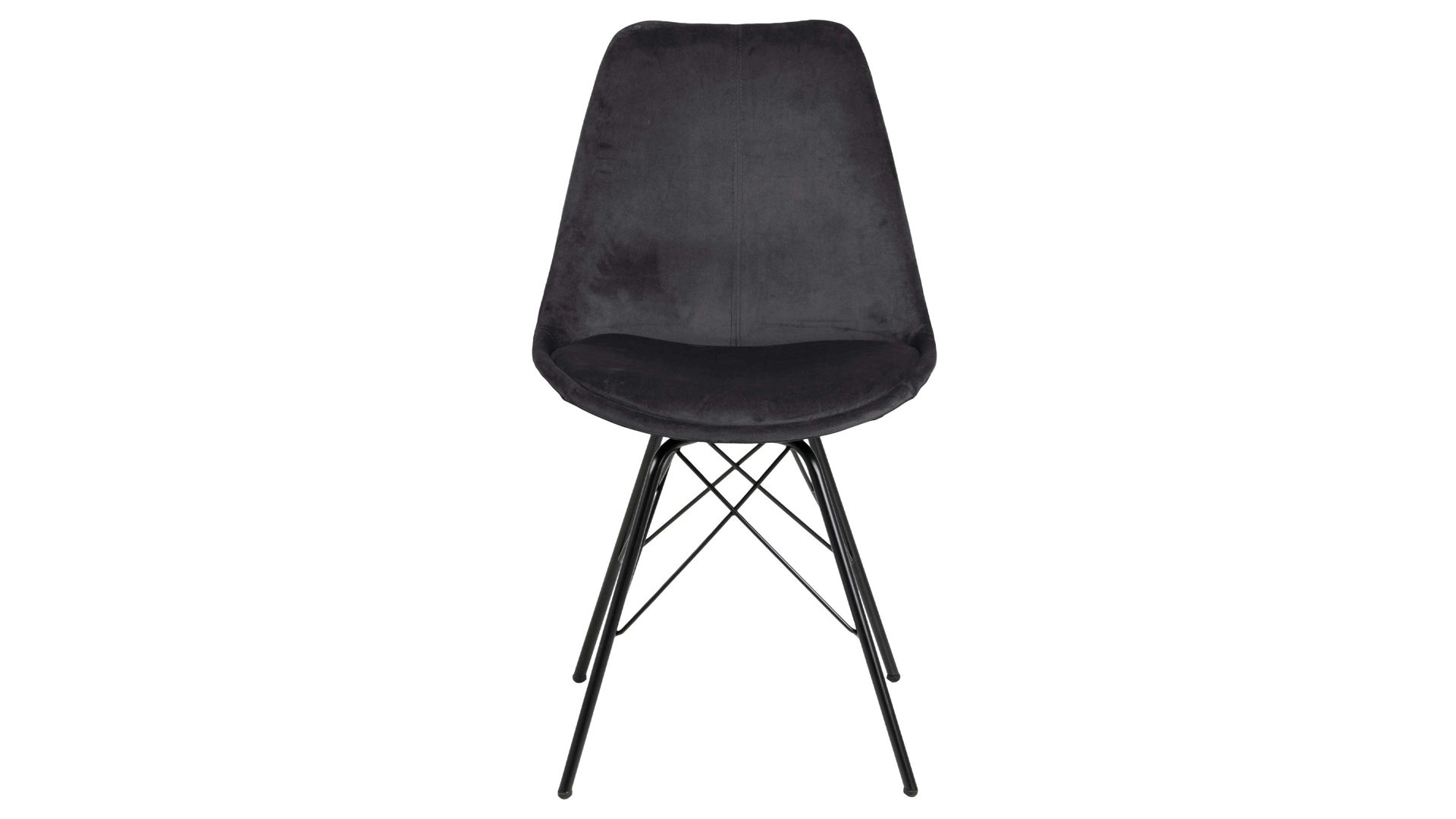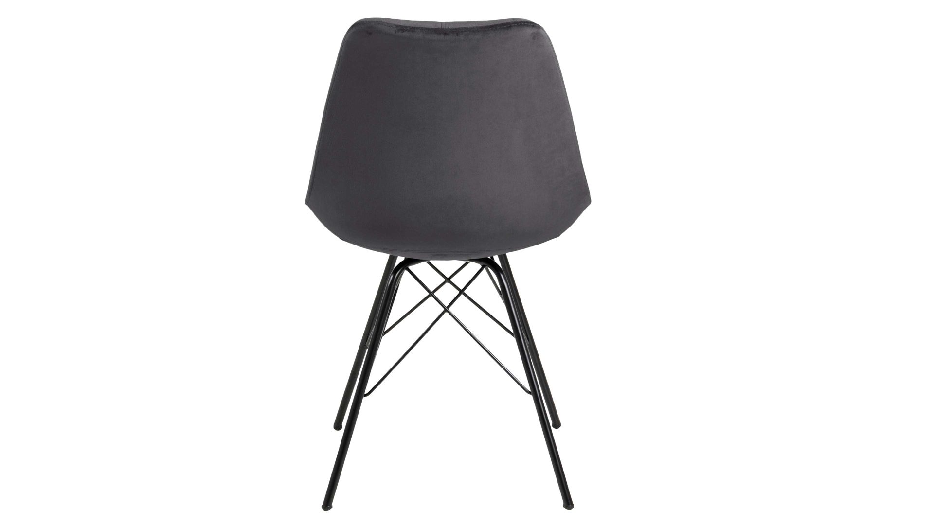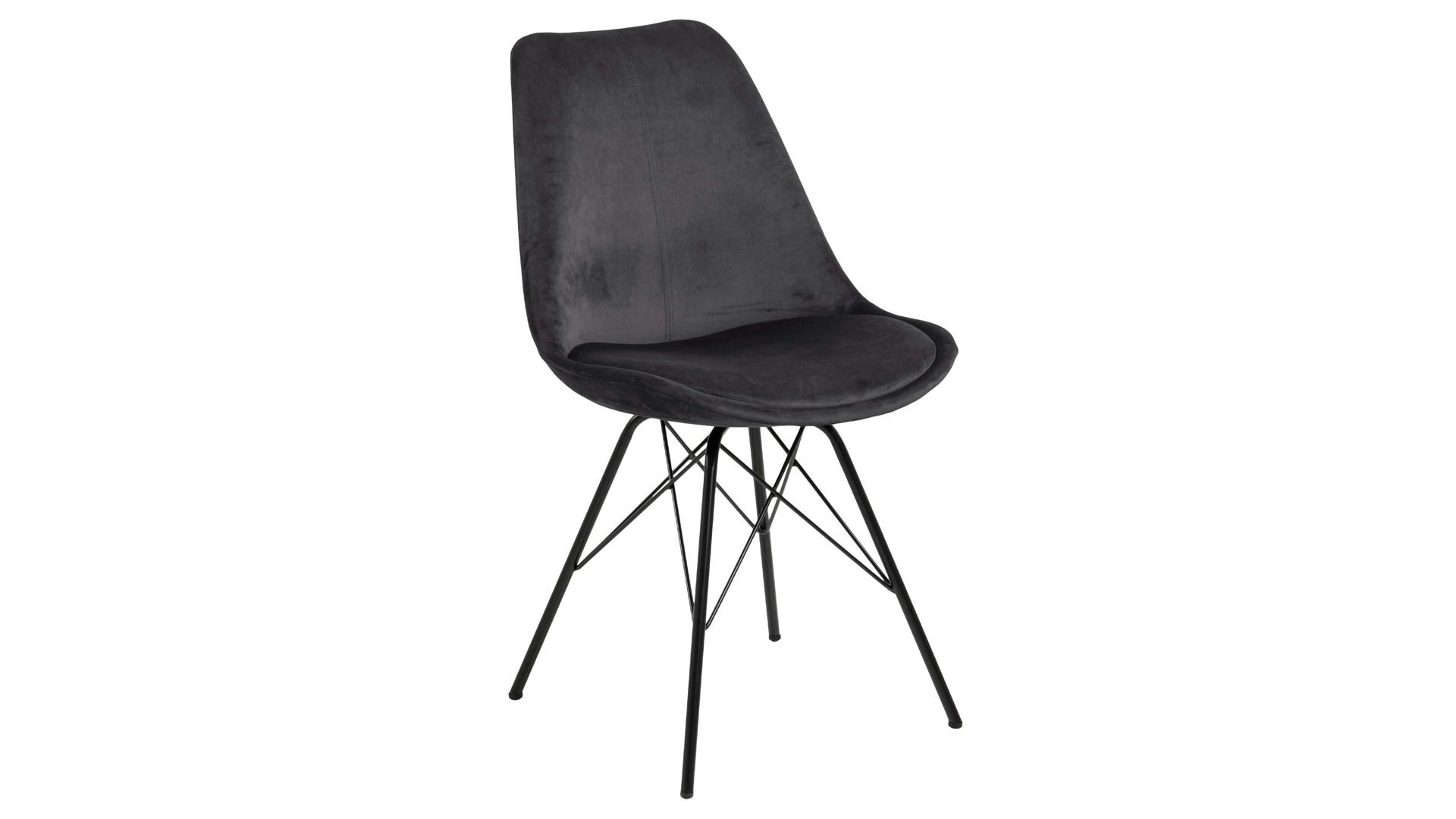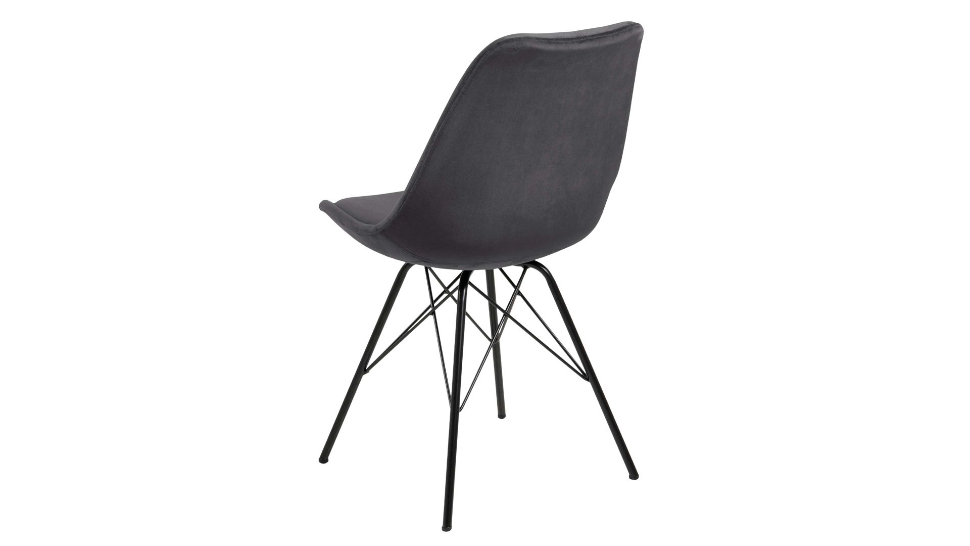Dieser Polsterstuhl verkörpert Eleganz. Als stabile, dabei aber wunderbar filigran designte Basis fungiert ein mattschwarz pulverbeschichtetes Stahldrahtgestell. Darauf befindet sich eine dunkelgraue Sitzschale aus robustem Kunststoff. Sie ist rundherum mit Samt bezogen, ebenfalls in klassischem Dunkelgrau. Der trendige Samtbezug überzeugt sowohl qualitativ als auch optisch und haptisch.