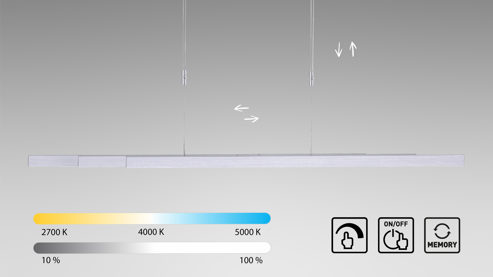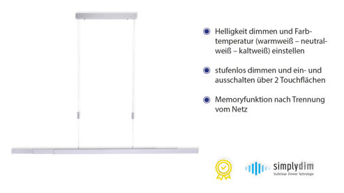 zwei Touchflächen - ON / OFF / DIM und stufenlose Farbtemperatursteuerung